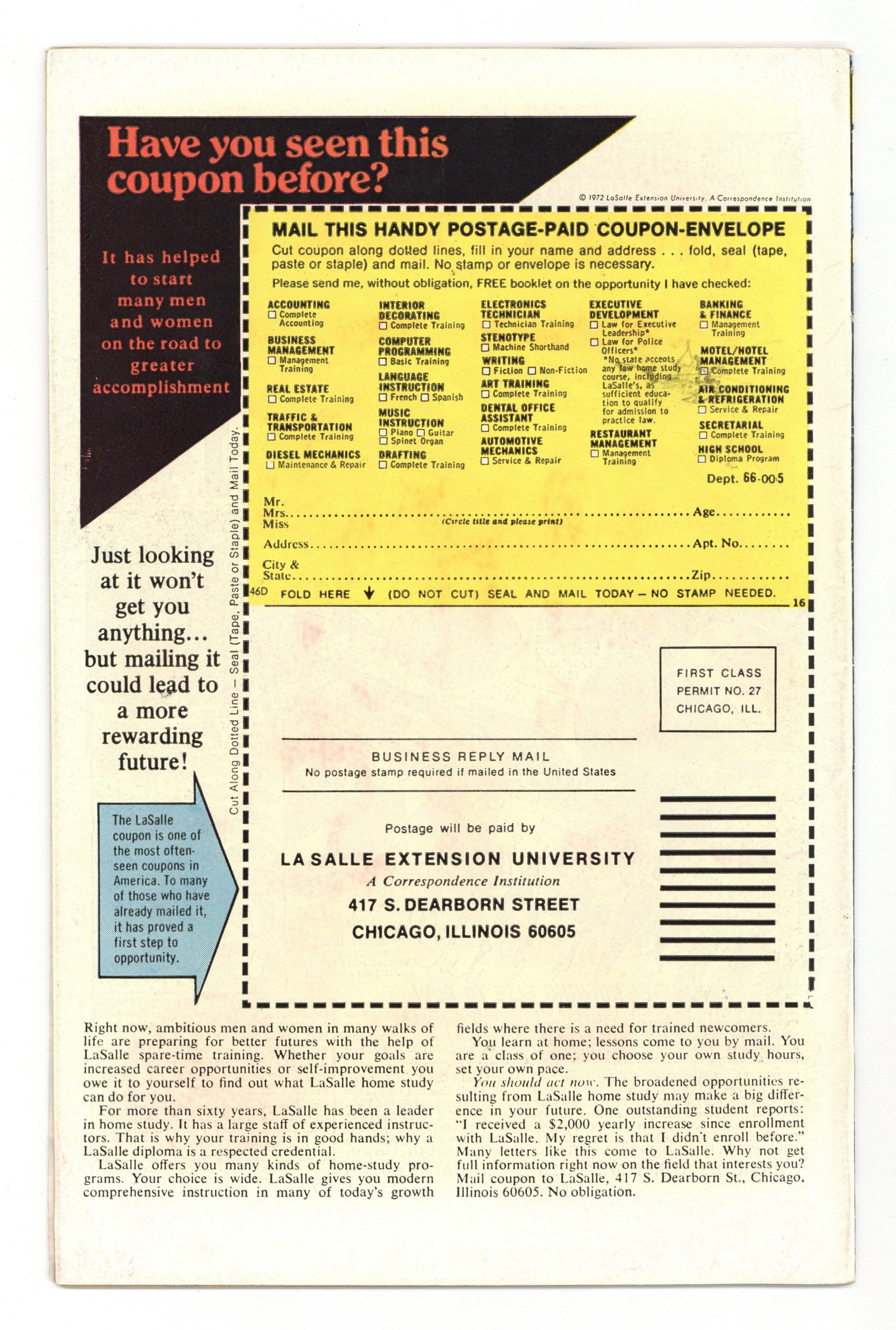 Starts Jan 3 "Slayers from the Sea!" Script by Tony Isabella. Pencils by George Tuska and Bill Everett (chapter 1) and George Evans (chapter 2). Inks by Fred Kida (chapter 1) and Frank Springer (chapter 2). Cover by Ron Wilson and Frank Giacoia. Story continues from Giant-Size Super-Villain Team-Up 2. The Sub-Mariner leaves Latveria after having second thoughts about forming an alliance with Doctor Doom. Following Prince Namor's departure, the Latverian monarch realizes that he does in fact need help for his various plans of conquest and decides to reach out to the Prince of Atlantis. Meanwhile, the Sub-Mariner visits Hydro-base and is ambushed by a trio of villains: Tiger Shark, Doctor Dorcas, and Attuma! A super slugfest erupts on land and under the sea! Will the Avenging Son prevail? Flashback cameo appearances by the Fantastic Four, Daredevil, Quicksilver, Spider-Man, Thor, and the Hulk to recap Doctor Doom's previous battles through the years. (Notes: This issue features Bill Everett's last published artwork on the Sub-Mariner, the character he created in the golden age. This issue also contains a full-page ad for Hostess Twinkies featuring Captain Marvel vs. Nitro.) Cover price $0.25.