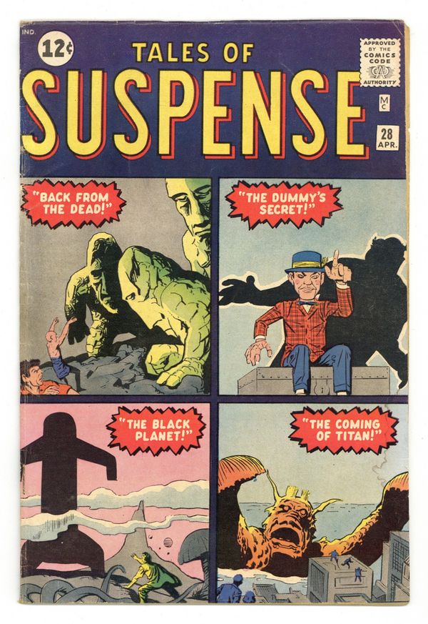 Cover pencils by Jack Kirby, inks by Steve Ditko. "Titan, the Amphibian from Atlantis!", pencils by Jack Kirby, inks by Russ Heath; John Cartwright, an auto executive, pretends to betray the human race to the invaders from Atlantis. "Special Sale" text story, art by Joe Maneely. "Back From the Dead!", pencils by Jack Kirby, inks by Dick Ayers; A fugitive hides on Easter Island and finds a scroll that awakens the stone heads; They turn out to be aliens, and take him with them as a zoo specimen. "The Dummy," pencils by Paul Reinman, inks by Joe Sinnott; Ventriloquist the Great Gregory and his wooden puppet Herman are both wooden aliens from Uranus! "The Secret of the Black Planet," script by Stan Lee, art by Steve Ditko; A man escapes from a prison planet only to mistake a native creature on another world for a rocket ship and ends up about to be devoured. 36 pages, full color. Cover price $0.12.