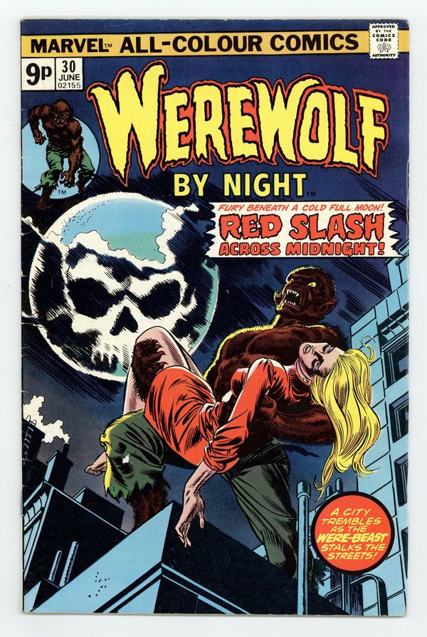 $70.00UK edition. Identical to US edition, but has 9p cover price. "Red Slash Across Midnight!" Written by Doug Moench. Art by Don Perlin. The city trembles as a were-beast stalks the streets! And it's not Jack Russell. 32 pages, FC.