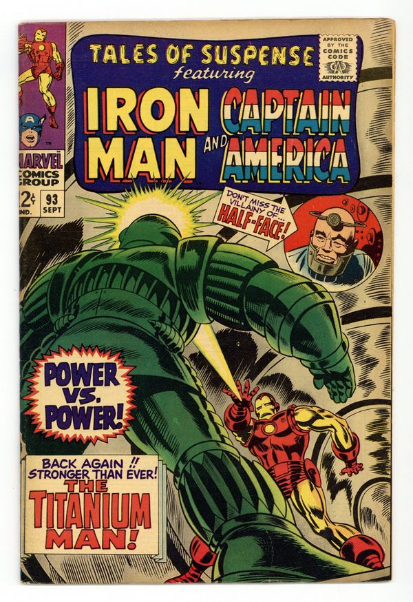 Tags: Marvel Legacy Numbering: Captain America (part 93), Marvel Legacy Numbering: Tales of Suspense (part 93), Captain America, Iron Man$10.00- Cover loose at both staples.