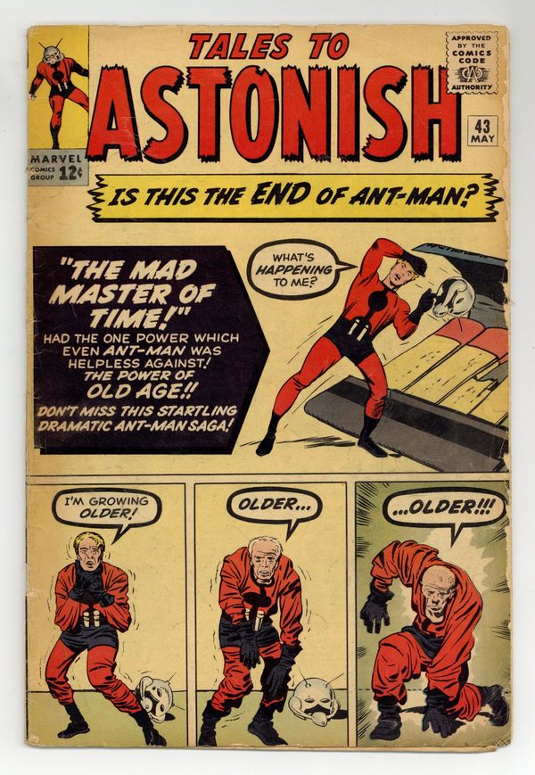 Tags: Marvel Legacy Numbering: Hulk (part 43)$80.00Cover by Jack Kirby and Sol Brodsky. The Mad Master of Time!, script by Stan Lee and Larry Lieber, art by Don Heck; A scientist forced to retire makes a device to artificially age others and holds the city hostage. Lady Luck text story. Frankie's Fast Ball!, script by Stan Lee and Larry Lieber, art by Larry Lieber and Sol Brodsky; A boy gains extraordinary physical and mental abilities due to his parents' exposure to radiation. My Fatal Mistake!, script by Stan Lee, art by Steve Ditko; A man is bitter because he has been replaced by a computer and must take a job servicing it. 36 pgs., full color. $0.12. Cover price $0.12.