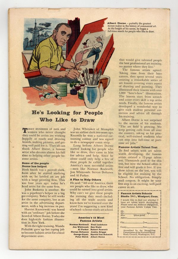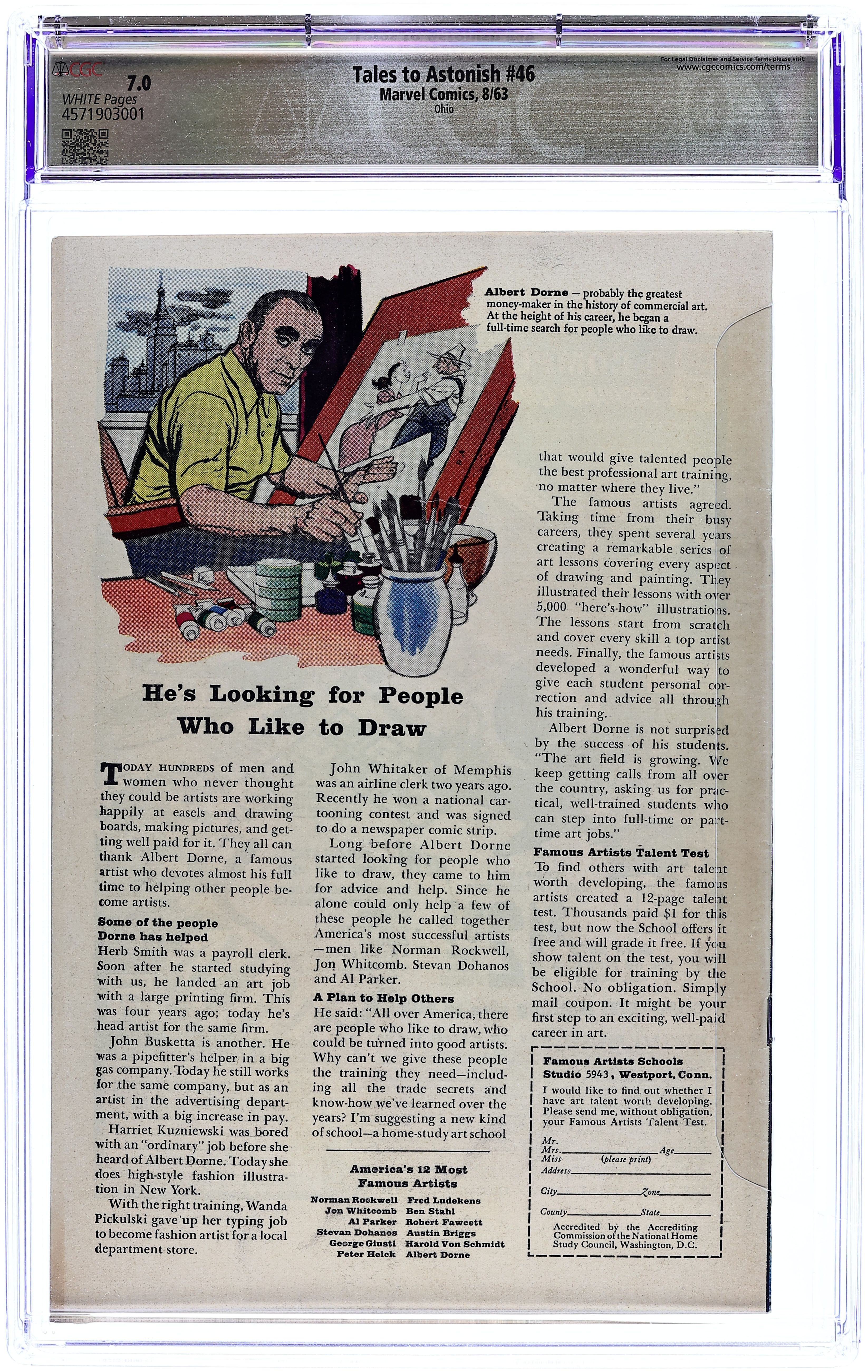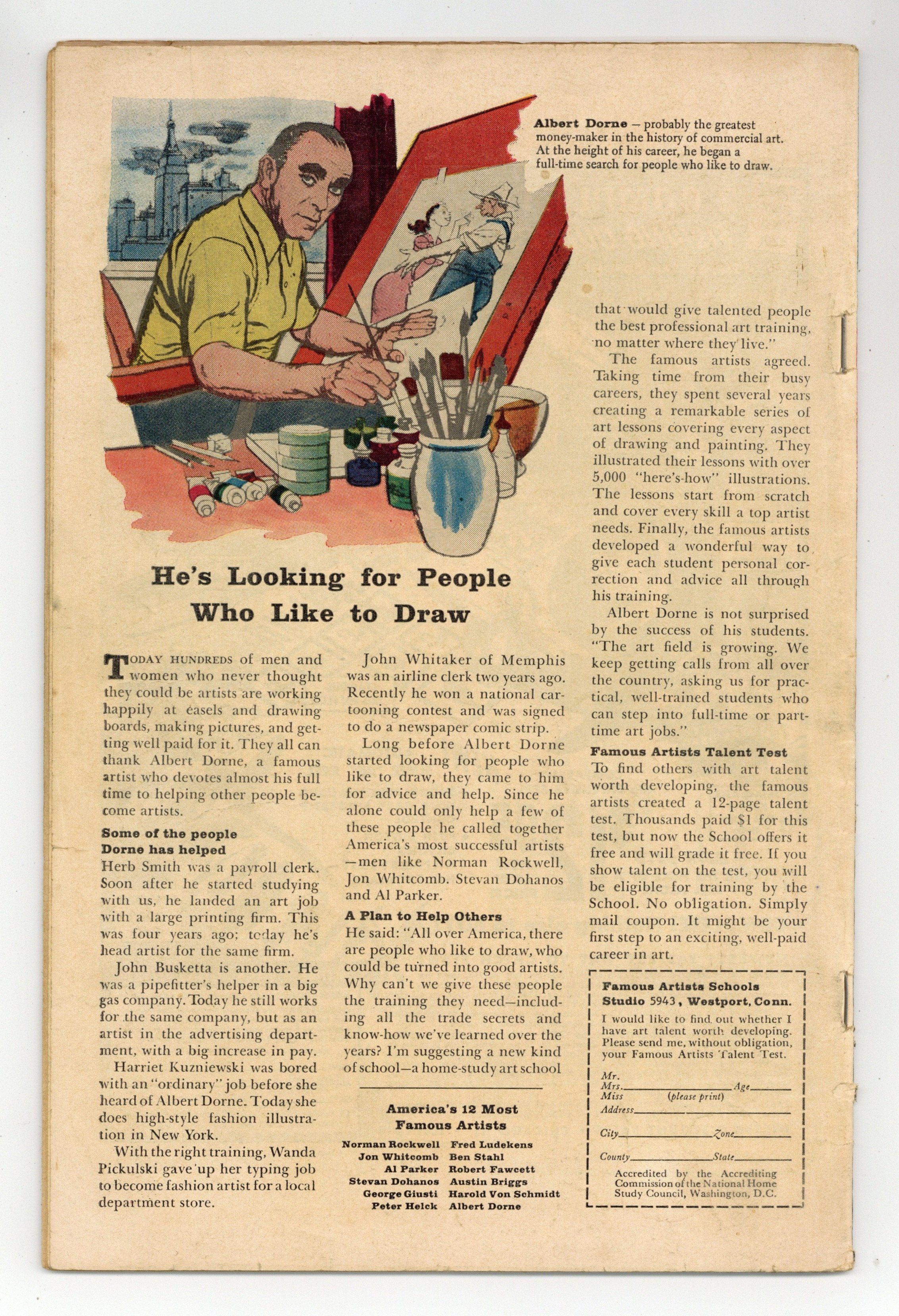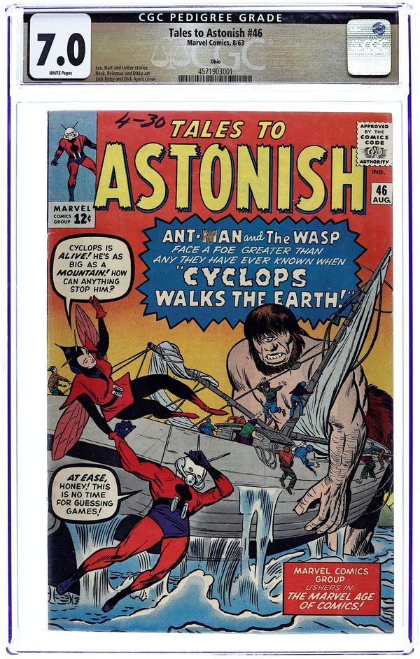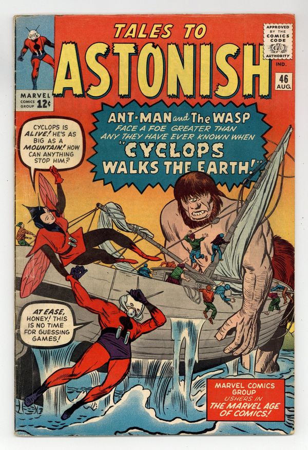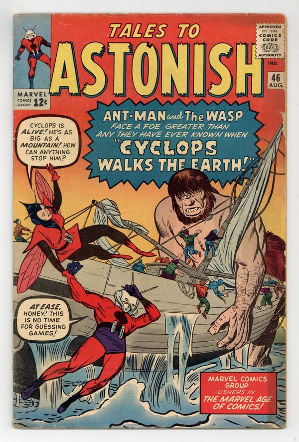 Cover by Jack Kirby and Dick Ayers. When Cyclops Walks the Earth, script by Stan Lee and Ernie Hart [as H. E. Huntley], art by Don Heck; While on vacation in Greece, Ant-Man and the Wasp go after a monster who terrorizes the local sailors. Ride to the Future text story. The Secret of the Swamp!, script by Stan Lee and Larry Lieber, art by Paul Reinman; A lonely and plain woman meets a handsome man in the swamp and she marries him, not knowing that he is also ugly and they have been made beautiful to each other by the swamp's magic. The Most Dangerous Weapon!, script by Stan Lee, art by Steve Ditko; In the year 2050 only one weapon remains on display in a museum as a reminder of the violent past. 36 pgs., full color. $0.12. Cover price $0.12.