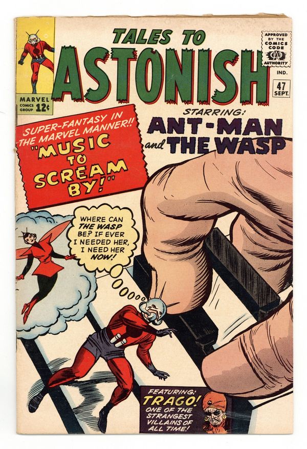 Cover by Jack Kirby and Dick Ayers. Music to Scream By, script by Stan Lee and Ernie Hart [H. E. Huntley], art by Don Heck; Ant-Man and the Wasp are caught by the music of Trago, the trumpet player, who has learned some mystic use of his trumpet in India. The Disappearance text story. The Smiling Gods!, script by Stan Lee and Larry Lieber, art by Larry Lieber and Matt Fox; Asian farmers pray to their gods for a good crop to appease their cruel overlord, and their grain grows so rapidly that it entangles and crushes him. Target...Earth!, script by Stan Lee, art by Steve Ditko; An alien lands on Earth with the intent of sizing up possible resistance to an invasion force. 36 pgs., full color. $0.12. Cover price $0.12.