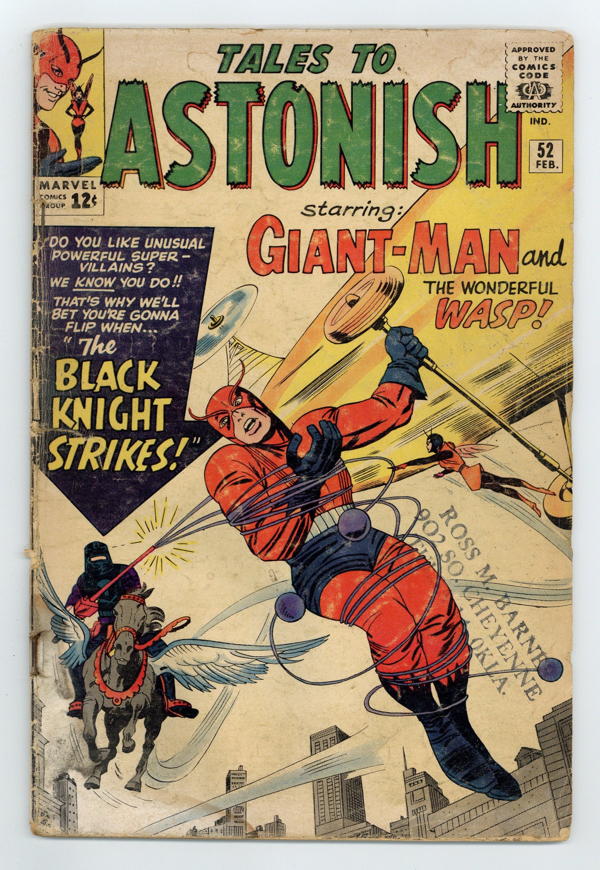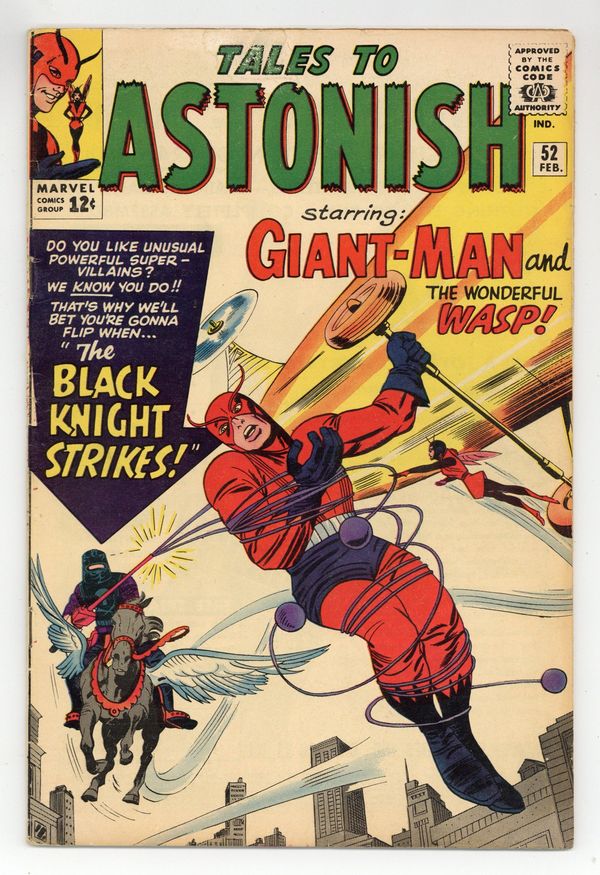 Cover by Jack Kirby and Sol Brodsky. The Black Knight Strikes!, script by Stan Lee, art by Dick Ayers; After being arrested for treason by Giant-Man, Professor Garrett flees to Europe where he manipulate the genes of horses and eagles to create a winged horse. X-Men #3 ad, art by Jack Kirby and Sol Brodsky. Avengers #3 ad, art by Jack Kirby and Paul Reinman. Not What They Seem!, script by Stan Lee and Larry Lieber, art by Larry Lieber and George Roussos [as G. Bell]; The Wasp tells the tale of prison escapees who try to avoid a planet with a trap, but are doomed when they take the wrong side in a battle of the sexes. 36 pgs., full color. $0.12. Cover price $0.12.