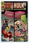 Tags: Marvel Legacy Numbering: Hulk (part 64), Hulk$27.50Cover by Jack Kirby and Dick Ayers. When Attuma Strikes!, script by Leon Lazarus, art by Carl Burgos and Paul Reinman; When Hank snaps at Jan for making a clumsy error during an experiment, she tearfully decides to get away from his abuse and take a trip; When her plane is captured in Attuma's latest bid for surface world conquest, a remorseful Giant-Man comes to the rescue. The Horde of Humanoids!, script by Stan Lee, art by Steve Ditko and George Roussos (as George Bell); Banner has been jailed as a traitor and is popping tranquilizers to keep himself from turning into the Hulk; Rick goes right to the commander in chief to tell the prez Banner's secret and to ask for his release; Much to Talbot's chagrin, the president orders Bruce's release and the two are sent to Astra Island to oversee testing of Banner's absorbatron which has the power to soak up a nuclear blast. 36 pgs., full color. $0.12. Cover price $0.12.