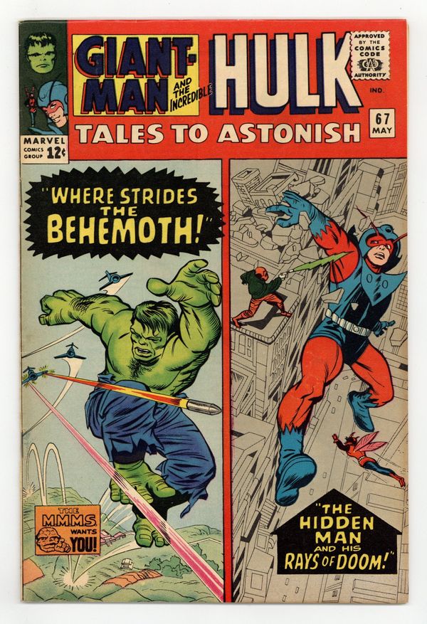 Cover by Jack Kirby and Chic Stone. The Mystery of the Hidden Man and his Rays of Doom, script by Stan Lee, art by Bob Powell and Chic Stone; The Hidden Man and his henchman Loko try and gain the powers of Giant-Man, failing miserably when Wasp steps in to save the day. Where Strides the Behemoth, script by Stan Lee, art by Steve Ditko and Frank Giacoia (as Frank Ray); The Hulk beats on the Russians bad enough that when he decides to leap away, they don't try to stop him; Jumping all the way to the Himalayas, the Hulk is finally tired out and transforms to Banner just in time to be menaced by a local bandit chieftan; Talbot catches up with Bruce in this hairy predicament and when their captors are attacked by a rival band of raiders, Bruce and Glenn fall off a cliff to their death? 36 pgs., full color. $0.12. Cover price $0.12.