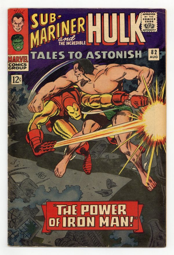 Cover by Gene Colan and Dick Ayers. The Power of Iron Man!, script by Stan Lee and Roy Thomas, art by Gene Colan, Jack Kirby, and Dick Ayers; Namor and Iron Man beat up on each other; Namor abandons the battle when he spots the battle cruiser of Krang floating the water nearby. The Battle Cry of the Boomerang!, script by Stan Lee, art by Jack Kirby and Bill Everett; The Hulk saves Betty from Boomerang and in so doing thwarts the initial plans of the Secret Empire in stealing the secret of the deadly Orion missile. 36 pgs., full color. $0.12. Cover price $0.12.