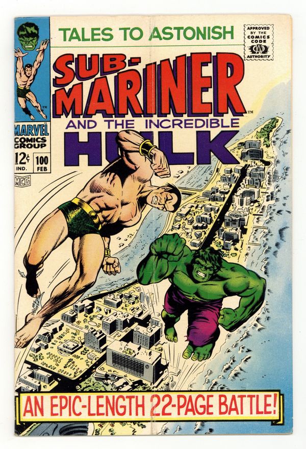 Cover by Marie Severin and Dan Adkins. Let There Be Battle!, script by Stan Lee, art by Marie Severin, Dan Adkins, and Roger Brand; Looking for an ally in his war with the surface world, Namor decids to try to recruit the Hulk to his cause; The only problem is that the Puppet Master has chosen this moment to mind control the Hulk and sends him to defeat his old aquatic enemy. 36 pgs., full color. $0.12. Cover price $0.12.