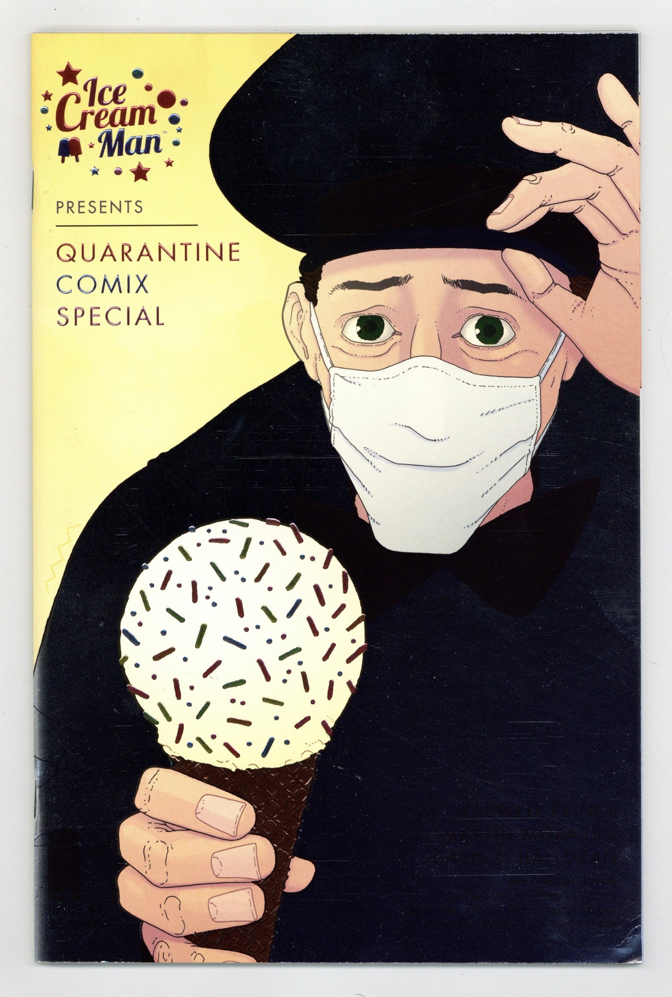 $23.00Written by Maxwell Prince. Art and Cover by Martin Morazzo and Chris O'Halloran. Art by Anthony Marques and J. Bone. In the early days of the pandemic, the team behind ICE CREAM MAN launched an online-only series of mini-comics set in the ICM universe. The project was called, predictably, QUARANTINE COMIX. These strange little ditties were meant to tide folks over while the industry was on pause-and also raise money for struggling comic shops, with 50 percent of all proceeds donated to Comicbook United Fund/BINC. Now, collected in everyone's preferred format (a floppy comic book!) are all six issues of QUARANTINE COMIX, featuring brand-new cover art and bonus stories by guest creators. And, as before, 50 percent of creator profits will go to Comicbook United to help stores get back on their feet-because comic shops are sweet. 52 pages, full color. Rated M Cover price $5.99.