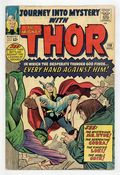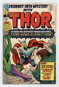 Cover pencils by Jack Kirby, inks by Chic Stone. Thor just can't catch a break--he faces Loki, the Cobra, and Mr. Hyde in "Every Hand Against Him!", script by Stan Lee, pencils by Jack Kirby, inks by Chic Stone; Loki sends the Cobra and Mr. Hyde to kidnap Jane; Thor confronts them but is forced to back down and let them go after they threaten to hurt her; Odin, witnessing the scene, expresses his displeasure at Thor's "weakness" and banishes him from Asgard; Thor explains that his former actions were a result of Loki's trickery; Odin allows Thor to return to Earth where he battles the villains again; He rescues Jane but she is critically ill; Whirling his hammer, Thor creates a vortex around Jane in which time stands still; This will afford him the opportunity to finish his battle with Cobra and Hyde; Appearances by Jane Foster and Heimdall. Marvel Masterwork Pin-Up of Thor, pencils by Jack Kirby, inks by Chic Stone. "Tales of Asgard" back-up, "The Defeat of Odin!" Script by Lee, pencils by Kirby, inks by Vince Colletta; Was Odin defeated by an army of men, or did he stage the battle to teach the gods a lesson? The revelation of what M.M.M.S. stands for. 36 pgs., full color. Cover price $0.12.