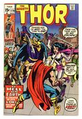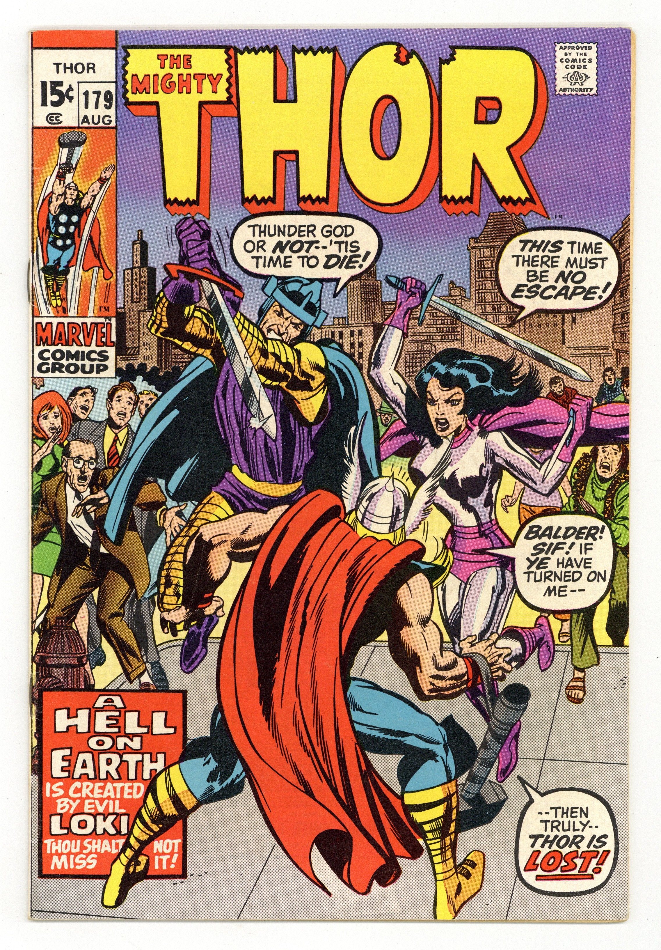 Tags: Marvel Legacy Numbering: Thor (part 179), Thor$12.75Cover pencils by Neal Adams and John Romita (alterations). Loki switches bodies with Thor in "No More the Thunder God!", script by Stan Lee, pencils by Jack Kirby, inks by Vince Colletta and John Verpoorten; Surveying the battle done by Surtur, Thor and the Warriors Three encourage the warriors of Asgard to rebuild and repair the damage done; Later Thor meets with Sif and the two have a brief romantic moment before Thor is greeted by Odin, who wishes the Thunder God to go to Earth and search for Loki; As Odin transports Thor to Earth, Loki has shacked up in a posh penthouse using his magical tricks to make it appear that he is wealthy; He awaits Thor's arrival as his magician is preparing a special trap to use against the Thunder God. Letter to the editor from DC Comics editor Neal Pozner. 36 pgs., full color. $0.15. Cover price $0.15.