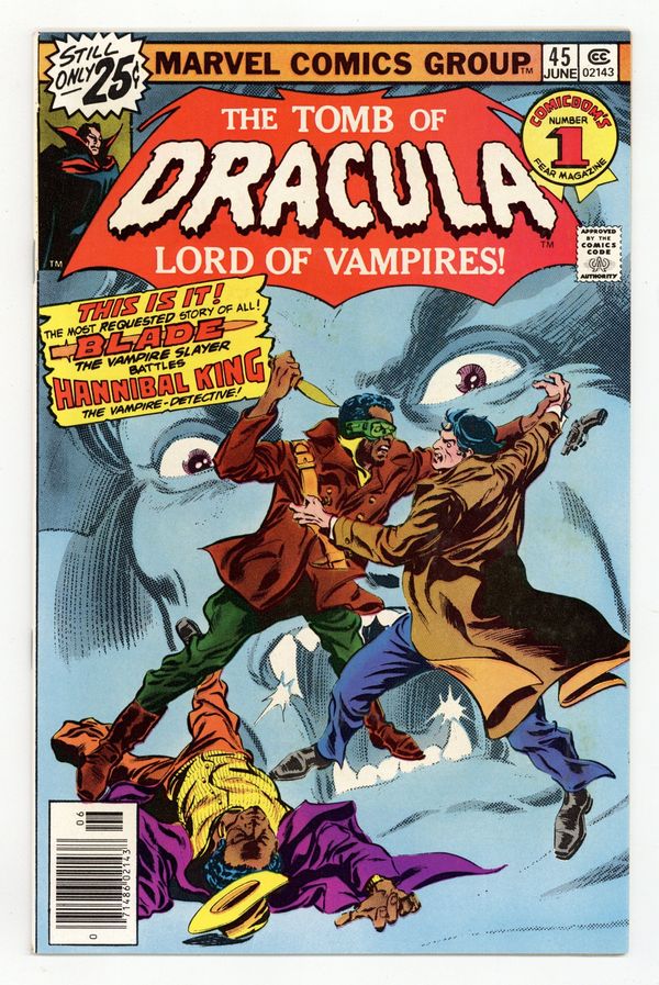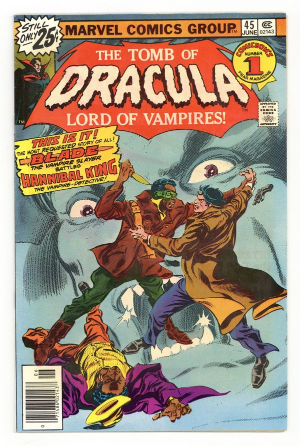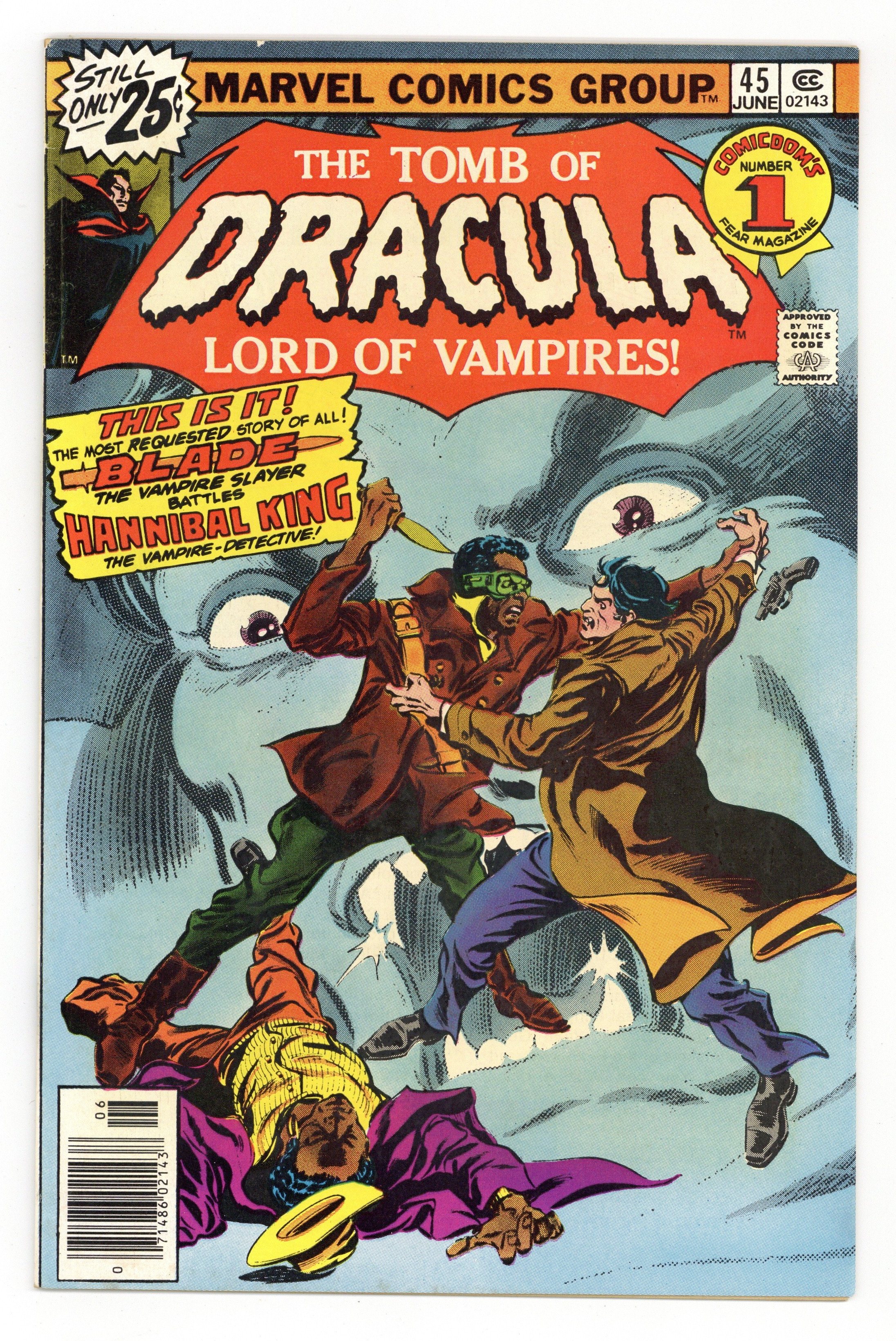 Blade battles Hannibal King in "Crossfire!" Story introduces Deacon Frost, the vampire who bit Blade's mother. Script by Marv Wolfman, pencils by Gene Colan, inks by Tom Palmer. The letters page contains Marvel Value Stamp series B # 92 (Stan Lee). Colan/Palmer cover. Cover price $0.25.