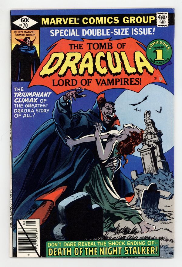 Direct Edition. Final issue of the series. Giant-size issue. The battle between Quincy Harker and Dracula comes to a climax in "Lords of the Undead!" Script by Marv Wolfman, pencils by Gene Colan, inks by Tom Palmer. Janus and Domini appearances. Blade cameo. Letter to the editor from comics writer Peter Sanderson. Colan/Palmer cover. Cover price $0.60.