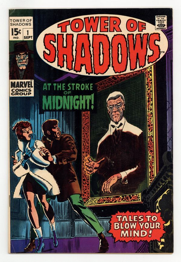 All new stories. Cover by John Romita. "At the Stroke of Midnight!", script and art by Jim Steranko; Lou and Marie search the Mansion Lou inherited from the uncle he killed for the treasure they know he had. "From Beyond the Brink," script by Johnny Craig, art by Johnny Craig and John Romita (alterations); Arthur follows Mr. Hathaway around in an attempt to write his biography; He cannot figure out why Mr. Hathaway is so passionate about debunking seances. "A Time to Die," script by Stan Lee, pencils by John Buscema, inks by Don Heck; Sebastian Scrogg has been trying to create a potion of immortality for years; He shelters a fugitive, Arthur, because he will have to put up with whatever he makes him do, and however he treats him. 36 pgs., full color. $0.15. Cover price $0.15.