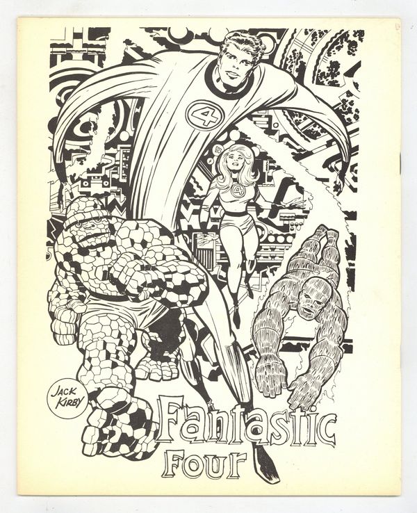 An index to the Fantastic Four, complete with story title, credits, page count, significance and featured villain. An interview with Jack Kirby by Bruce Hamilton, in which Kirby explains his recent move to DC, the future of comics, and more. Plus a centerfold by John Adkins Richardson. Also includes cover reproductions. 8-in. x 10-in. 16 pages, B&W. Cover price $1.25.