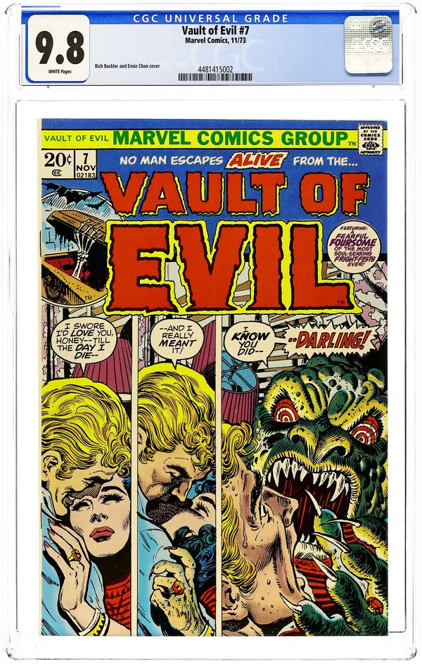 Cover inks by Ernie Chan. Not Flesh and Blood!, script by Carl Wessler, art by Myron Fass; A man hires a mechanic to build a robot to murder his business partner. Detour!, art by Myron Fass; A man at a train crossing is killed and places a curse on motorists every year that one more person must die there too. Horror in the City, art by Werner Roth; A man meets a woman who tells him of a war beneath the Earth between the Clabs and the Paladorns. The Black Gloves, pencils by Ben Brown, inks by David Gantz; A man wears black gloves in order to cover up the fanged mouths centered in his palms. 36 pgs., full color. $0.20. Cover price $0.20.