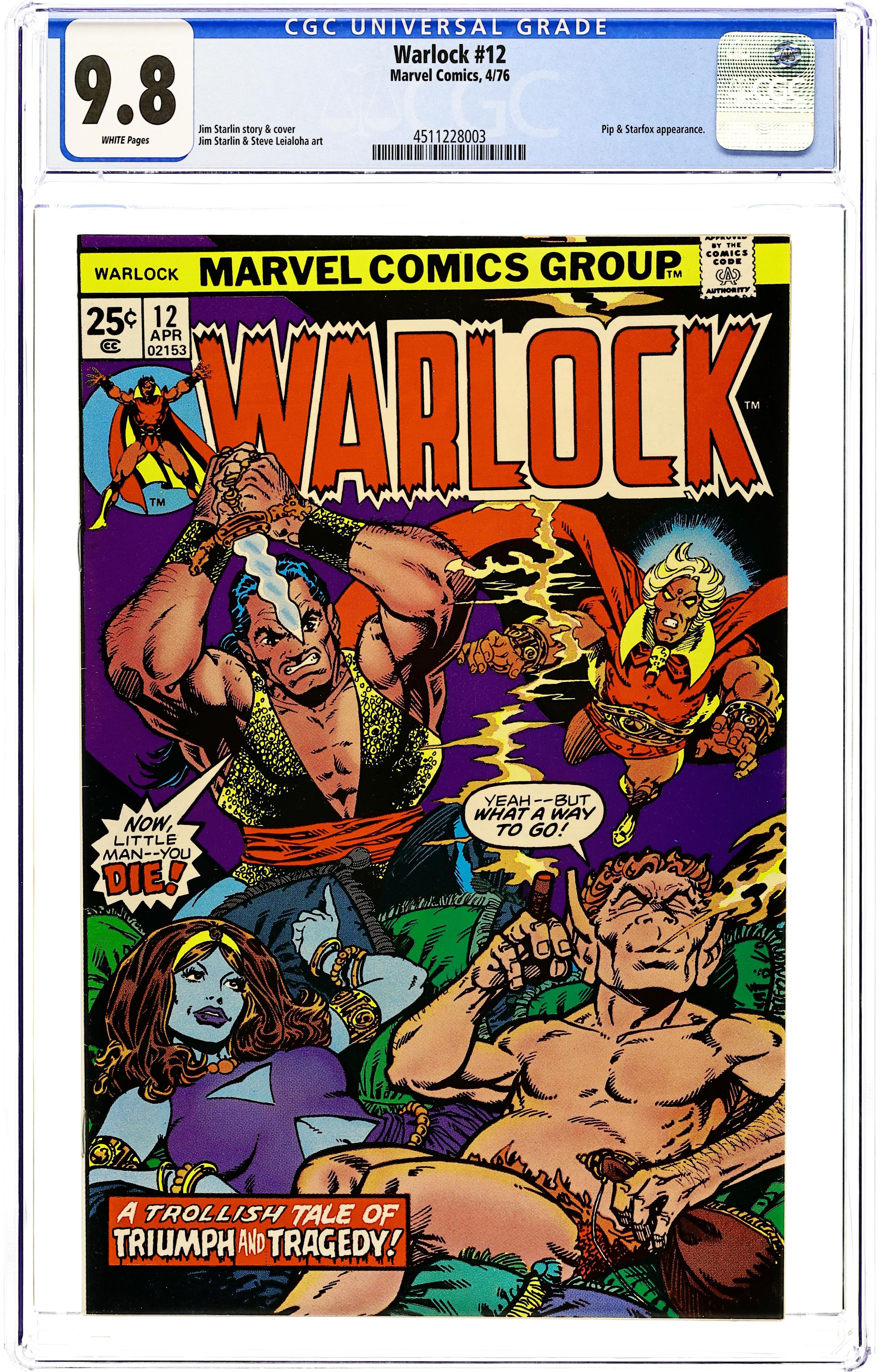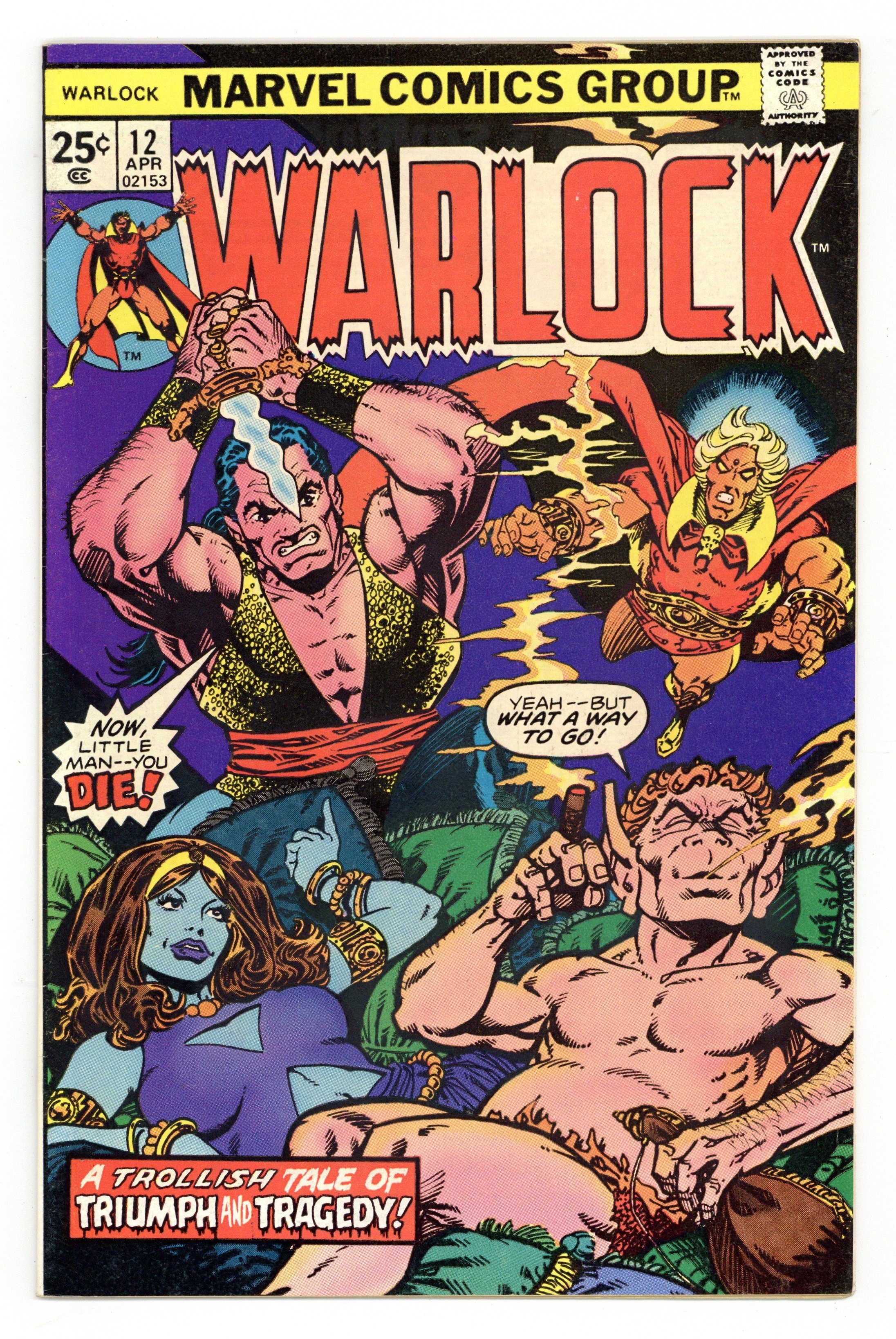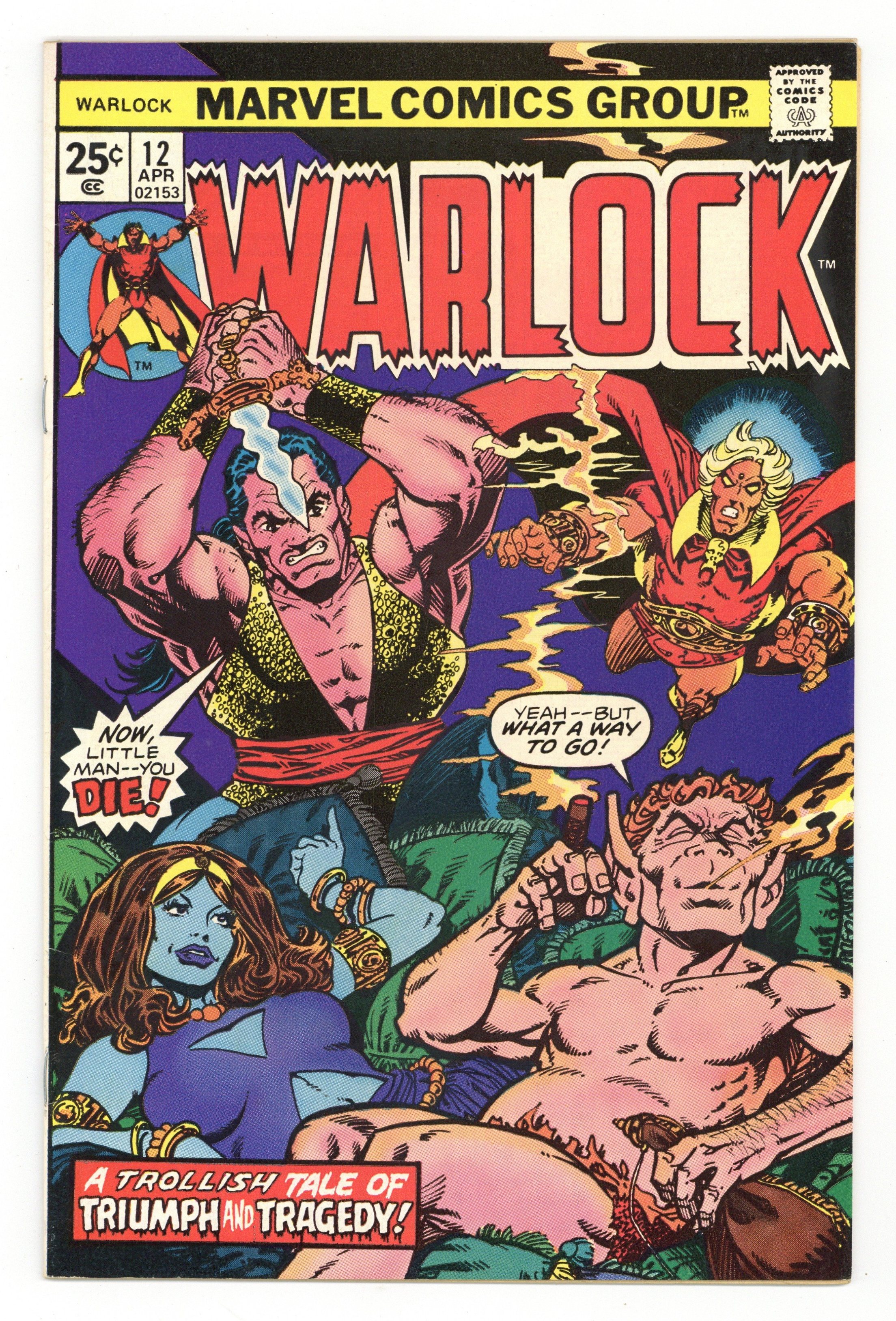 Cover by Jim Starlin. "A Trollish Tale!", script by Jim Starlin, pencils by Jim Starlin (layouts), inks by Steve Leialoha (finished art); Pip takes center-stage in this 'Trollish Tale'; Marvel's most dastardly troll runs into trouble at a cabaret, when performer Heater Delight catches his eye; But before love can bloom, Pip must take on Pro-Boscis, Heater's unrelenting, (and entirely cruel), owner; This issue contains the origin of Pip the Troll, though it may not be accurate. 36 pgs., full color. $0.25. Cover price $0.25.