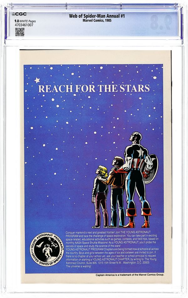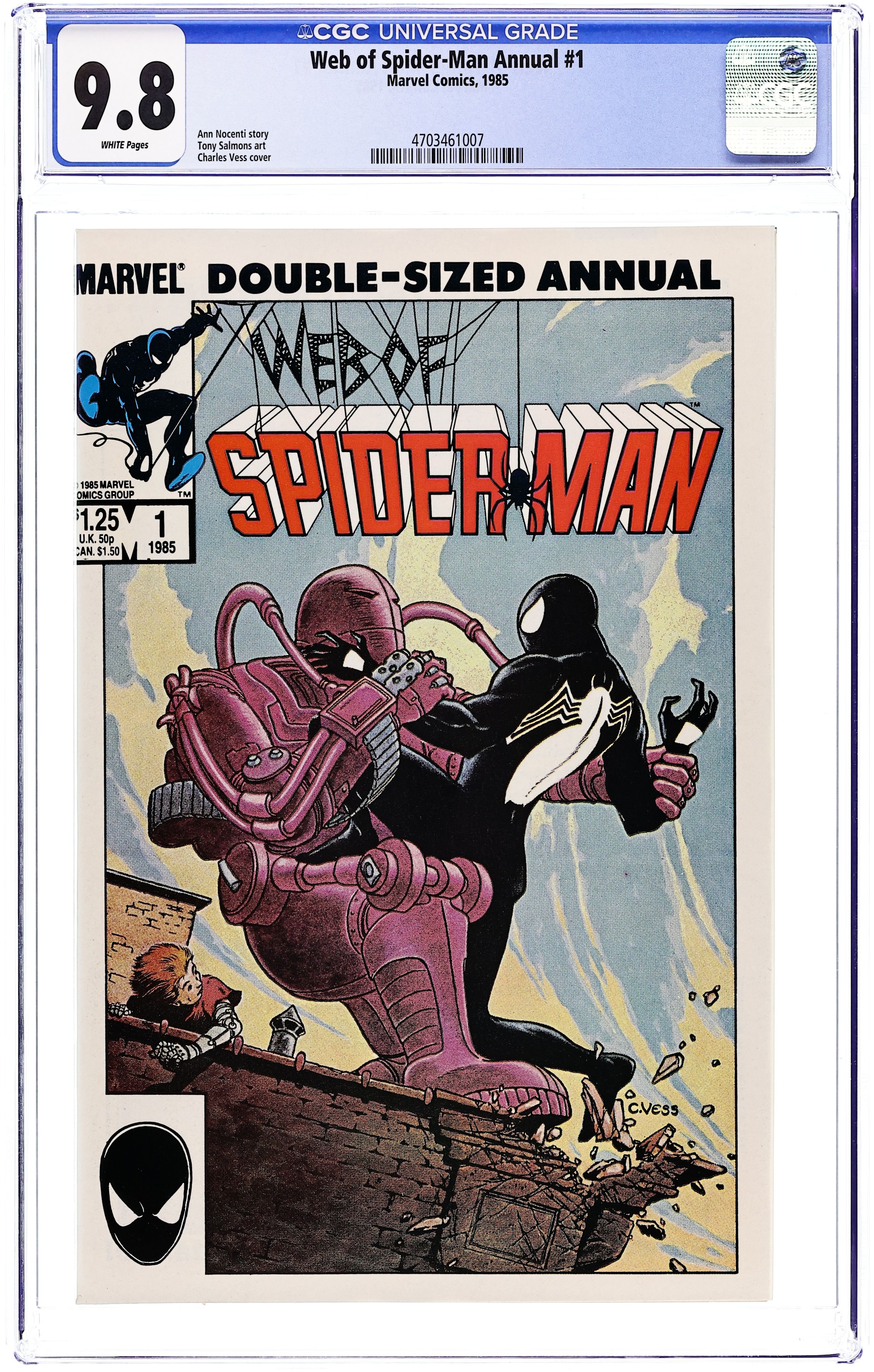 Direct Edition. "Give Me A Hand, Future Max" Story by Ann Nocenti. Art by Tony Salmons. Painted cover by Charles Vess. Spider-Man attempts to stop a robbery at a jewelry store only to discover that the felon is a home-made robot. Later on, Peter Parker attends the Young Inventor's Science Fair and runs into Max, the robot builder. Unfortunately, a con man meets Max too, and convinces young Max to build the Future Max exo-skeleton for him. Now Spider-Man must stop Future Max's rampage across New York City! 48 pages Cover price $1.25.
