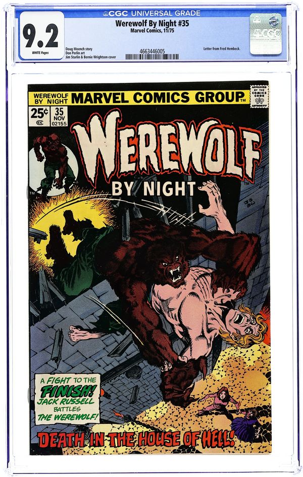 "Evil in Every Stone No Longer Hiding!" Written by Doug Moench. Art by Don Perlin. Cover by Jim Starlin and Berni Wrightson. Face-to-face for the first terrifying time - Jack Russell vs. the werewolf! Plus, the hideous secret of Belaric Marcosa! 32 pages, FC. Cover price $0.25.