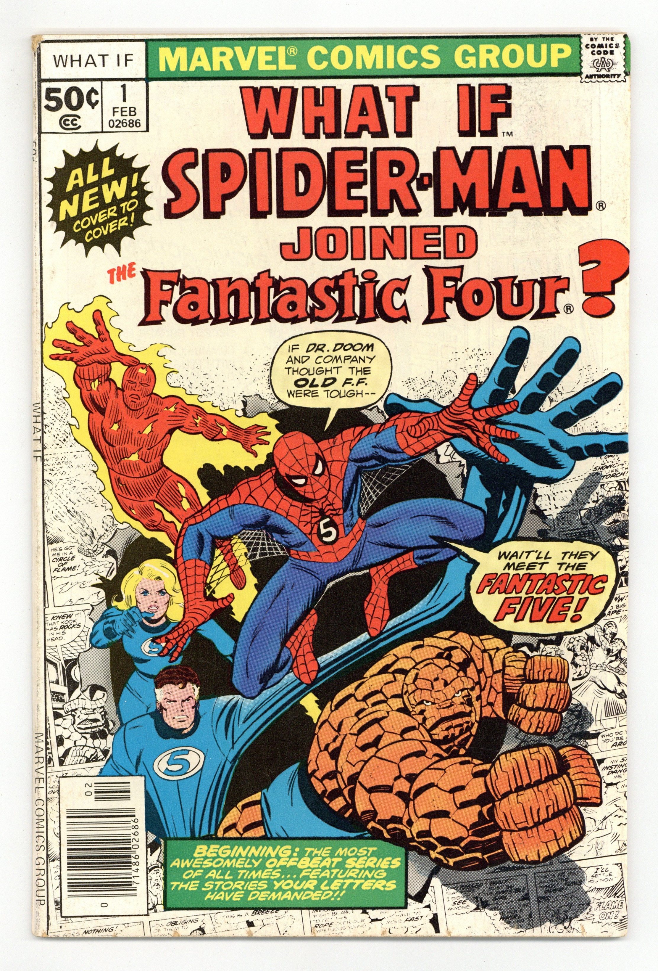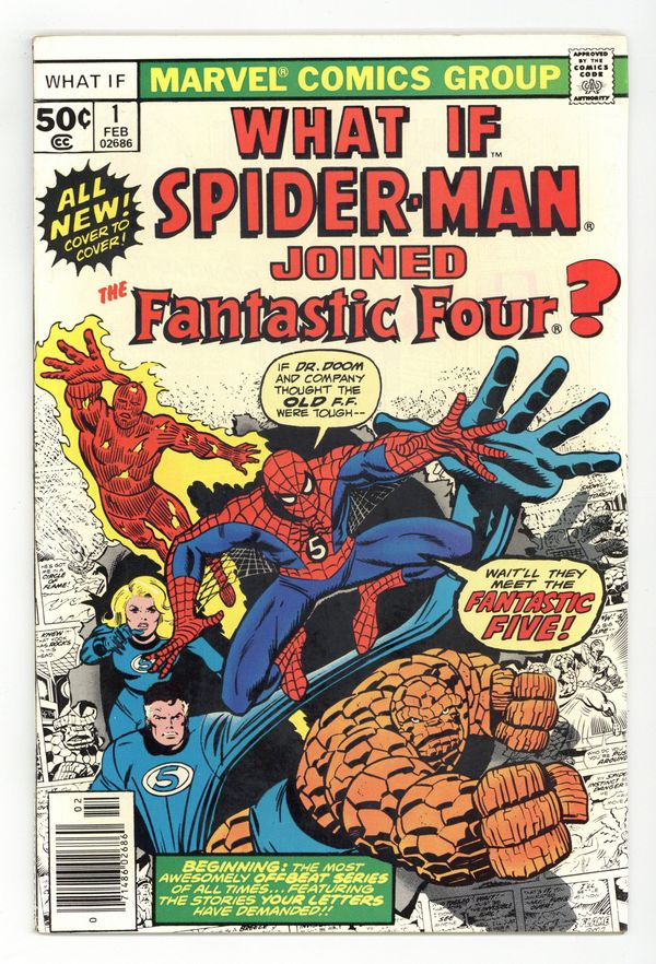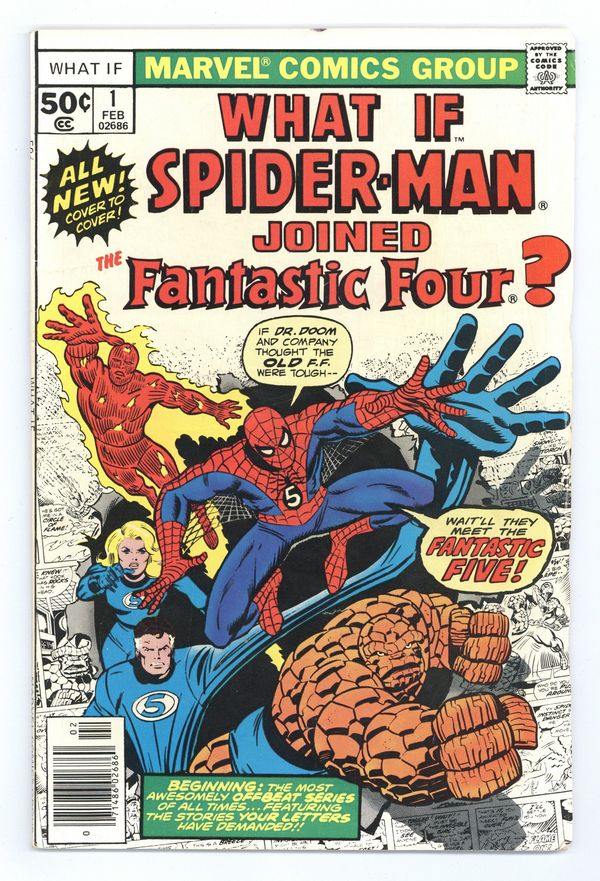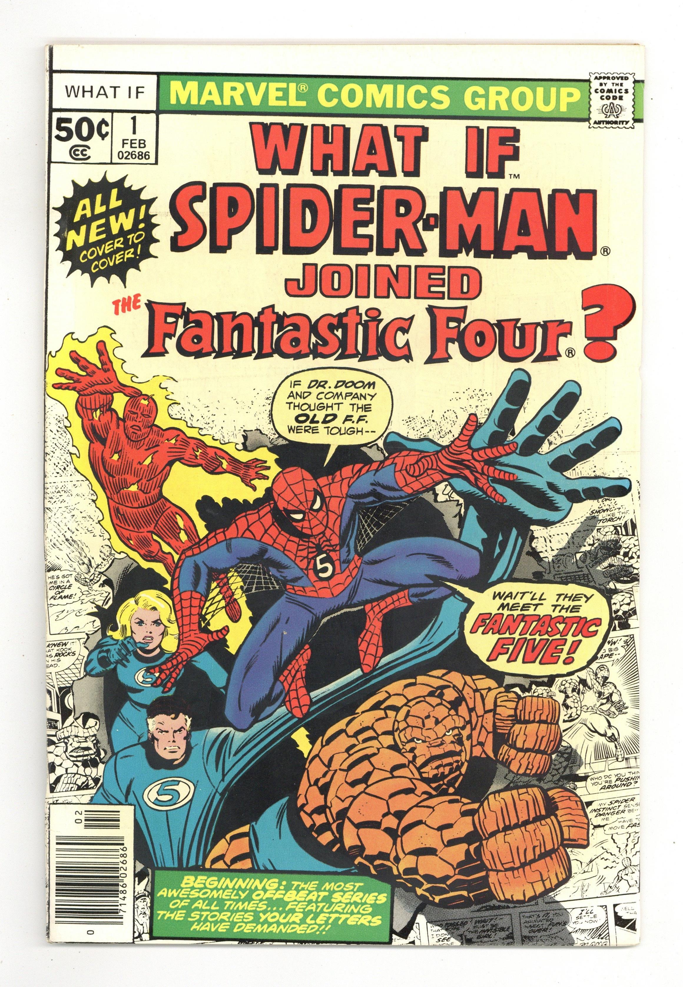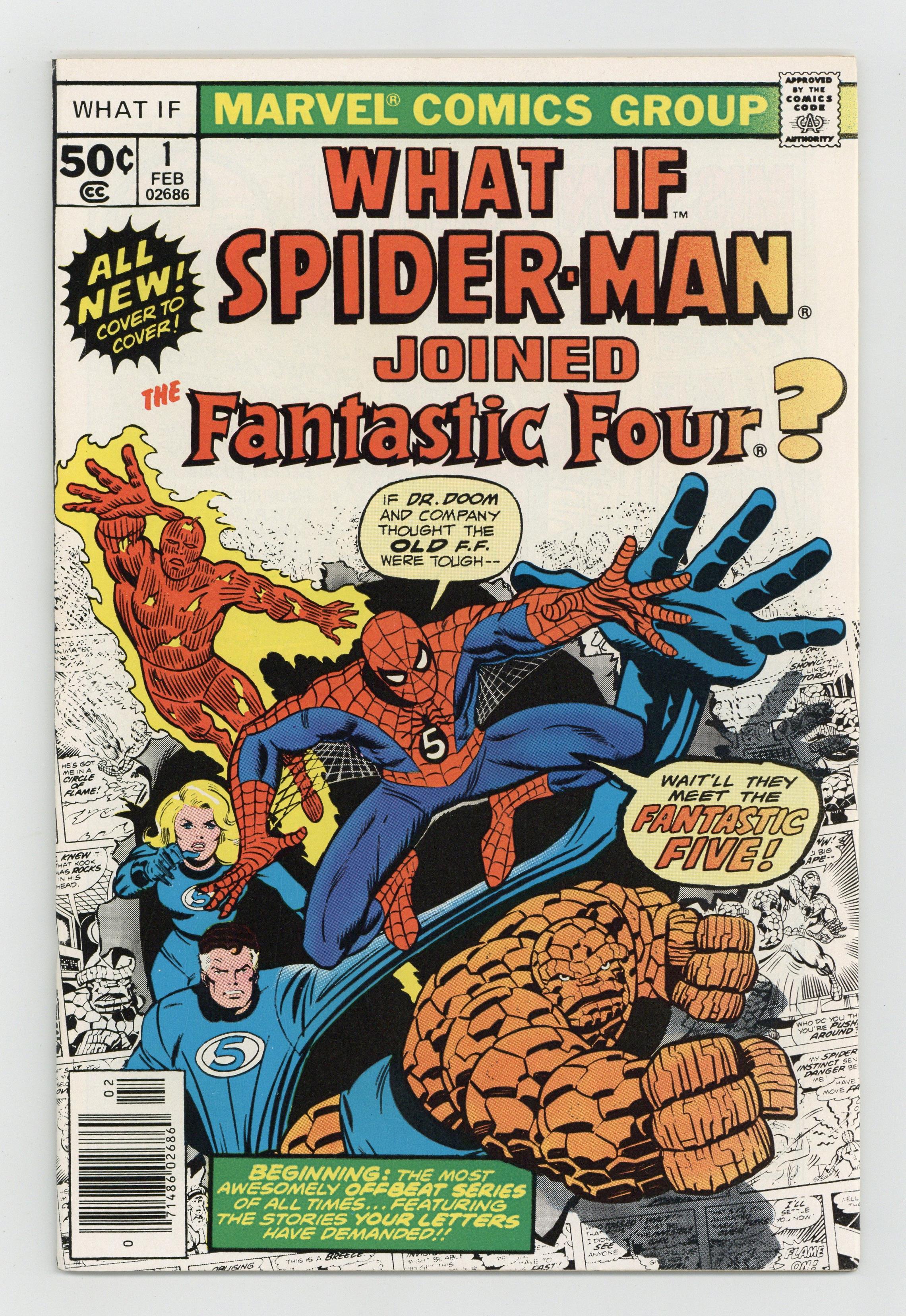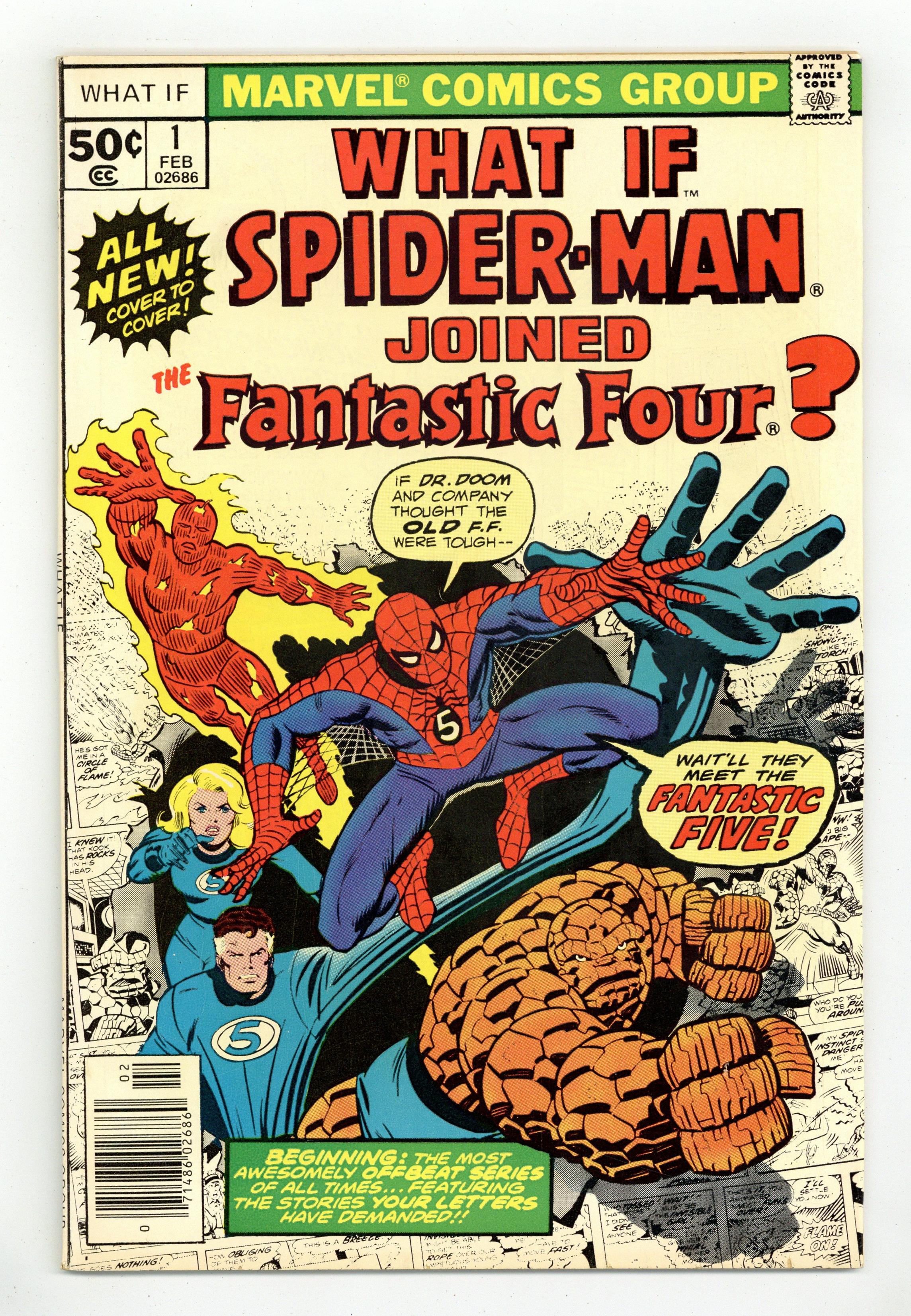 Cover by Ron Wilson and Joe Sinnott. What if Spider-Man Joined the Fantastic Four? Script by Roy Thomas, pencils by Jim Craig, inks by Pablo Marcos; Spider-Man becomes a member of the FF; Cameos by Killraven, the Squadron Supreme, and Deathlok. Hostess Fruit Pie ad with the Hulk, pencils by Dave Cockrum. Ad for Richochet Racers with Spider-Man and Captain America. Roy Thomas discusses how the title came about. 52 pgs. Cover price $0.50.