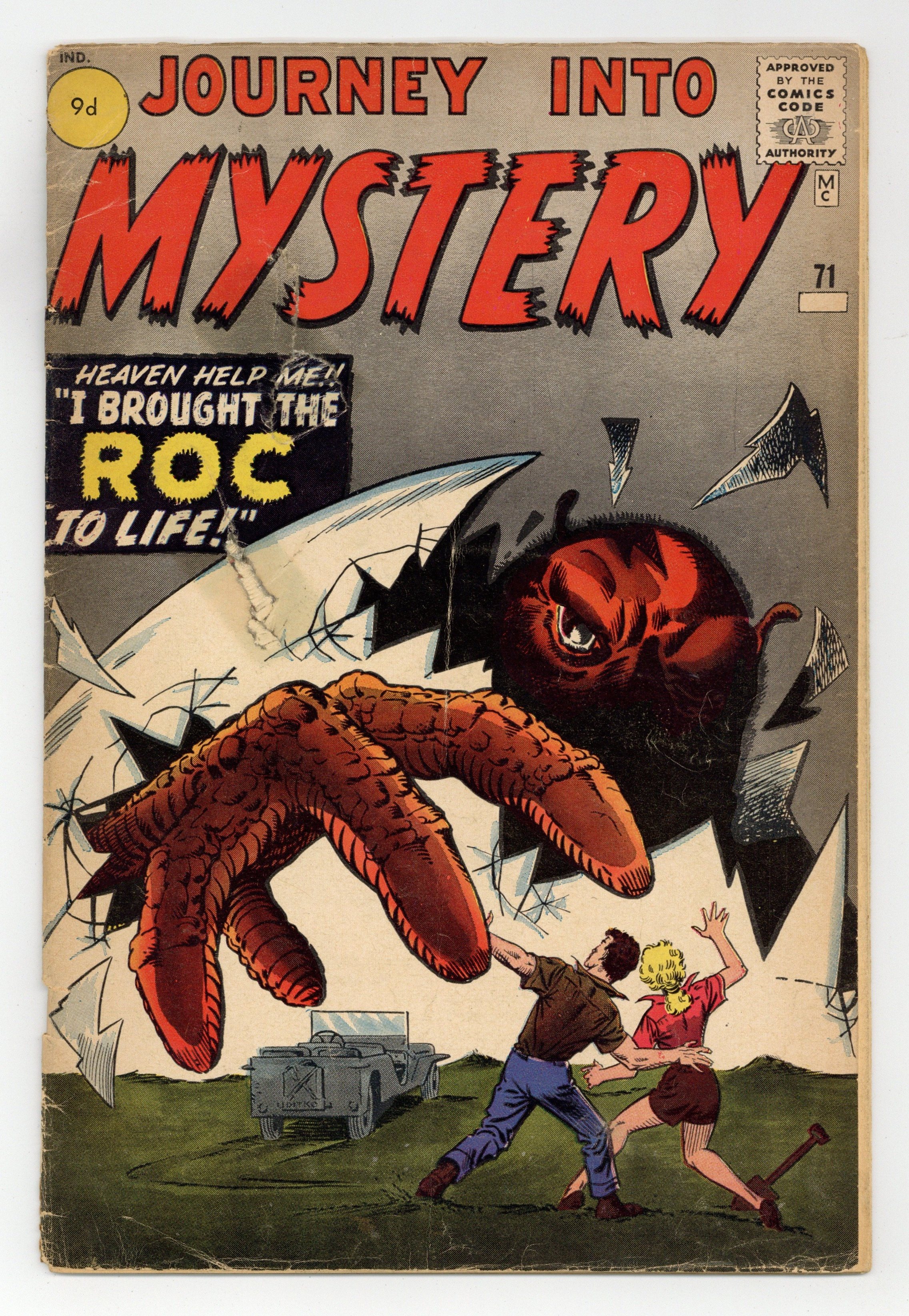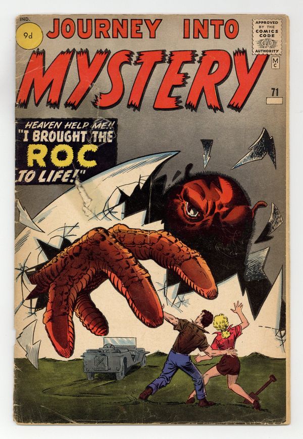 Cover by Steve Ditko. "I Brought the Roc to Life!," pencils by Jack Kirby, inks by Dick Ayers; Two newlyweds in Egypt uncover a huge egg in the sand that hatches into the Roc in the warm sunlight. "The Boy Who Vanished!," art by Paul Reinman; A lame boy wills himself to the future and his legs are healed before he sends himself home. "The Painting," art by Steve Ditko; An art dealer who buys quality paintings at rock-bottom insulting prices from poverty stricken artists and then sells them for thousands attempts to steal a beautiful painting from a gypsy who refuses to sell it; The dealer has the gypsy arrested on a trumped up charge and burgles the man's wagon to remove the painting. 36 pgs., full color.If you add this item to your want list, we will email you when it becomes available.