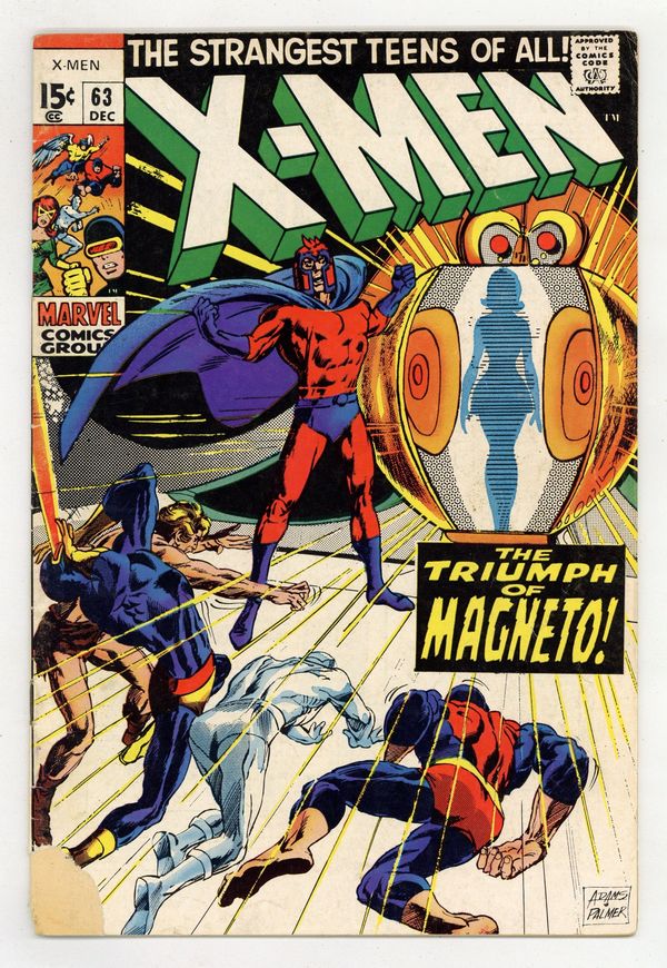 1st printing. Cover pencils by Neal Adams, inks by Tom Palmer. War in the World Below!, script by Roy Thomas, pencils by Neal Adams, inks by Tom Palmer; The X-Men and Ka-Zar battle Magneto and his manufactured mutants in the Savage Land. 36 pgs. $0.15. NOTE: 1994 JC Penney reprint exists. Can be identified by having a Stridex ad on the back cover. Cover price $0.15.
