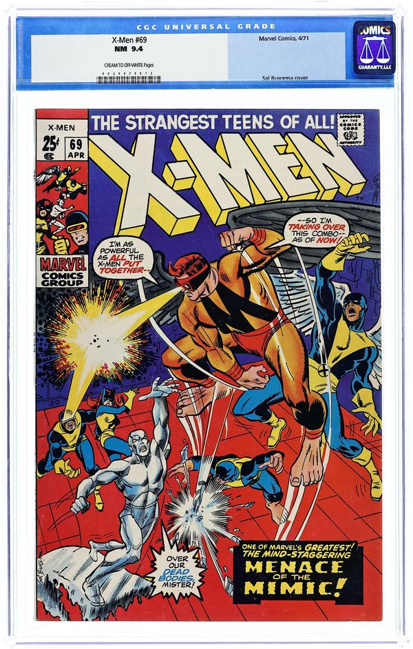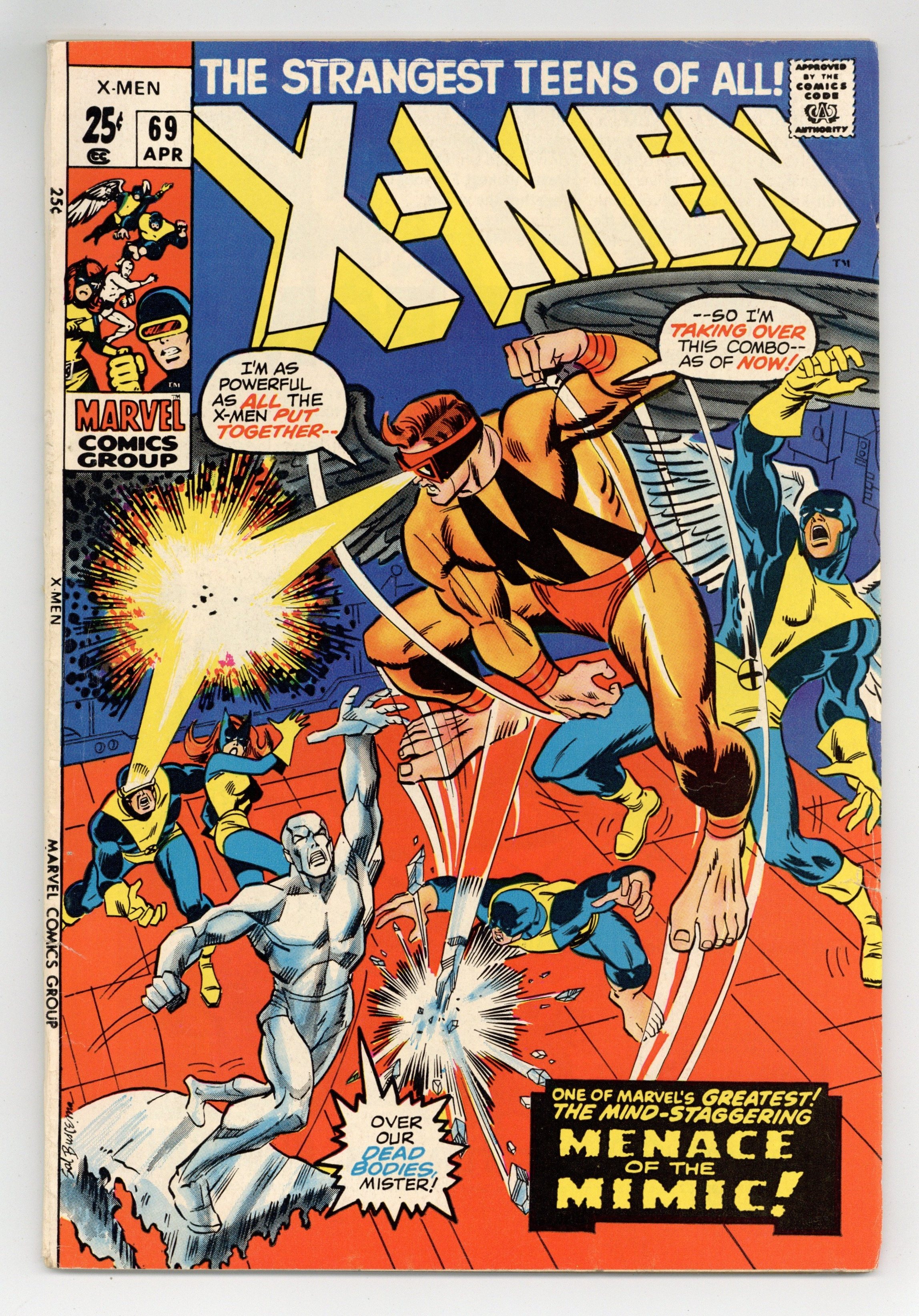 Cover art by Sal Buscema. The Supreme Sacrifice, script by Stan Lee, pencils by Jack Kirby (layouts) and Werner Roth [as Jay Gavin], inks by Dick Ayers; With the X-Men captured, Xavier heads back to investigate a fallen Sentinel to try and figure out what stopped it; The X-Men escape and battle the Sentinels but it is the timely intervention of Professor X and the self sacrifice of Dr. Trask that stops Master Mold and saves the day; reprinted from issue 15. Lo! Now Shall Appear-- the Mimic, script by Stan Lee, pencils by Werner Roth [as Jay Gavin], inks by Dick Ayers; reprinted from issue 15. 52 pgs. $0.25. Cover price $0.25.
