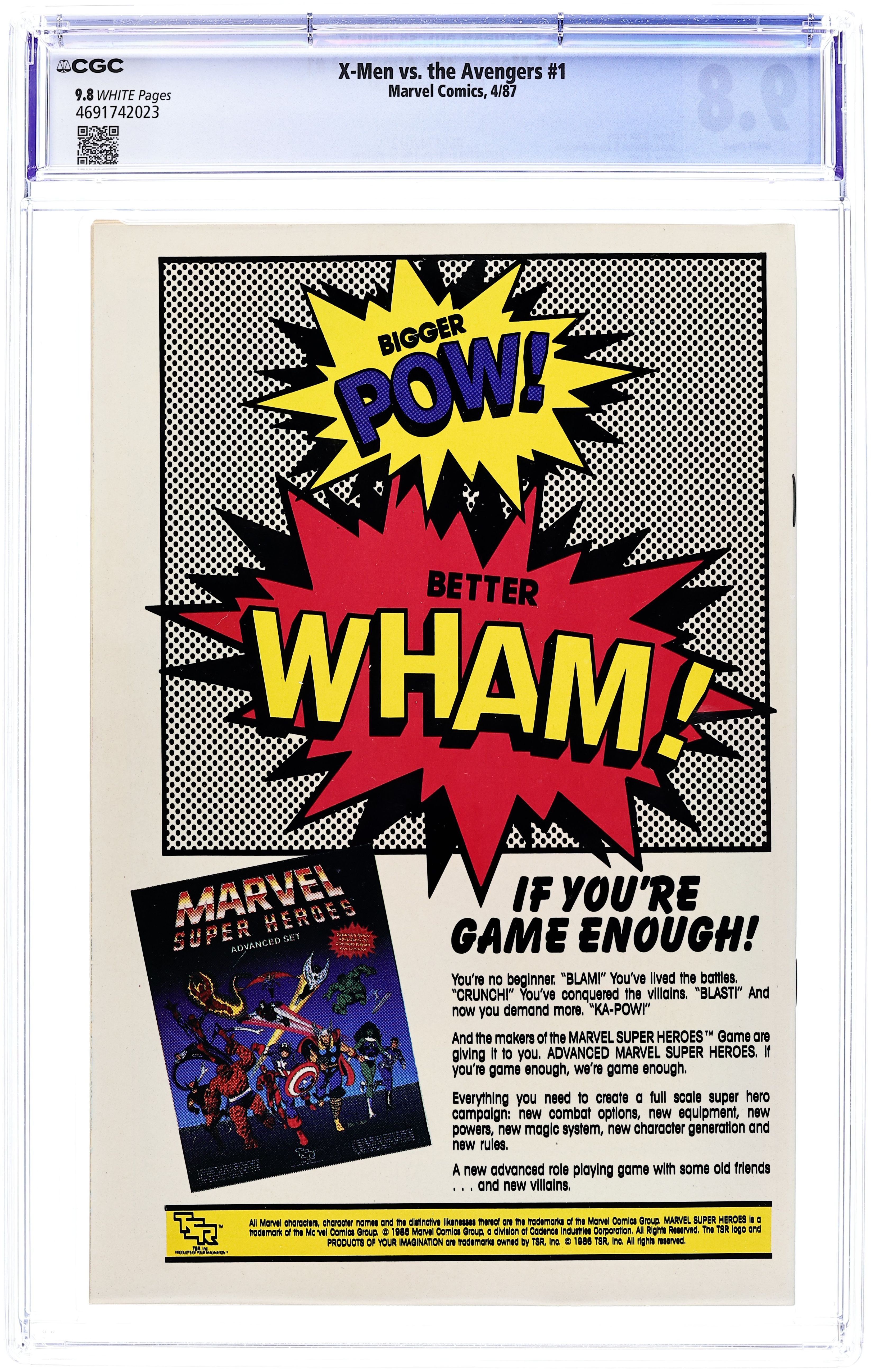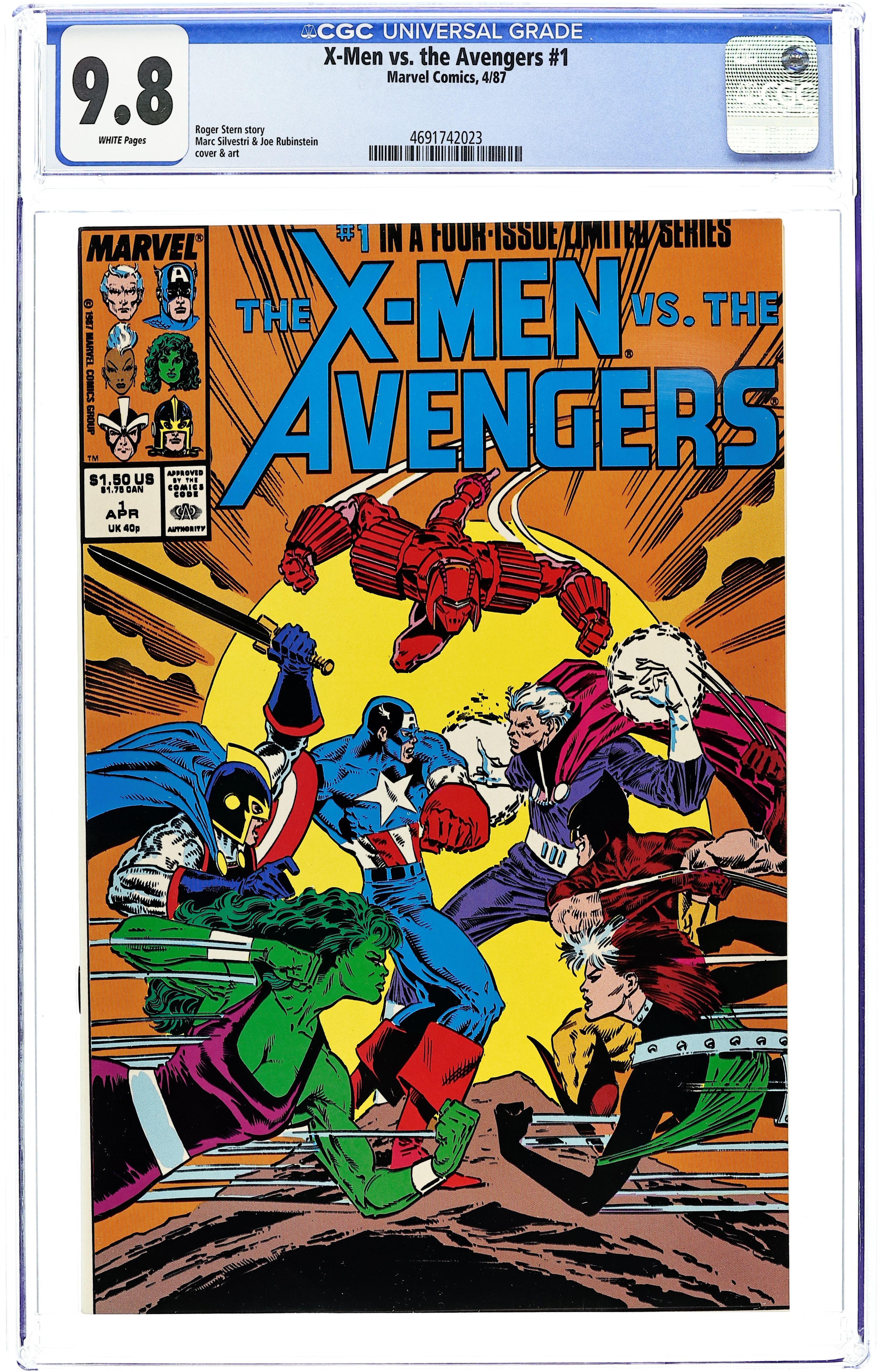 Direct Edition. "Justice for All!" Script by Roger Stern. Pencils by Marc Silvestri. Inks by Joe Rubinstein. Cover by Marc Silvestri and Joe Rubinstein. The Avengers are Earth's Mightiest Heroes and the planet's first and last line of defense against any menace that may threaten her. They never lose. The Uncanny X-Men are mutant outlaws whose heroic deeds are often over shadowed by growing mutant hysteria and prejudice. They look after their own. The Soviet Super-Soldiers are Russia's premiere super-heroes and they plan tosee the enemy of their country brought to justice! Caught in the middle of these super-powers is the Master of Magnetism! Once an arch villain of the highest order, now Magneto is trying to atone for his past transgressions asa member of the X-Men (see Uncanny X-Men 200). However, his past comes back to haunt him when fragments of his orbital base known as Asteroid M fall to Earth in Kampuchea and attract the attention of the super-hero community!Can a man truly change? And will the Soviet Super-Soldiers and the Avengers give him the chance to? Avengers Lineup: Black Knight, Captain America, Captain Marvel (aka Monica Rambeau), Doctor Druid, She-Hulk, and Thor. X-Men Lineup: Dazzler, Havok, Rogue, Storm, and Wolverine. (Note: Thisfour-part story was reprinted in 1993 in the trade paperback: The X-Menversus the Avengers.) 32 pages. Cover price $1.50.