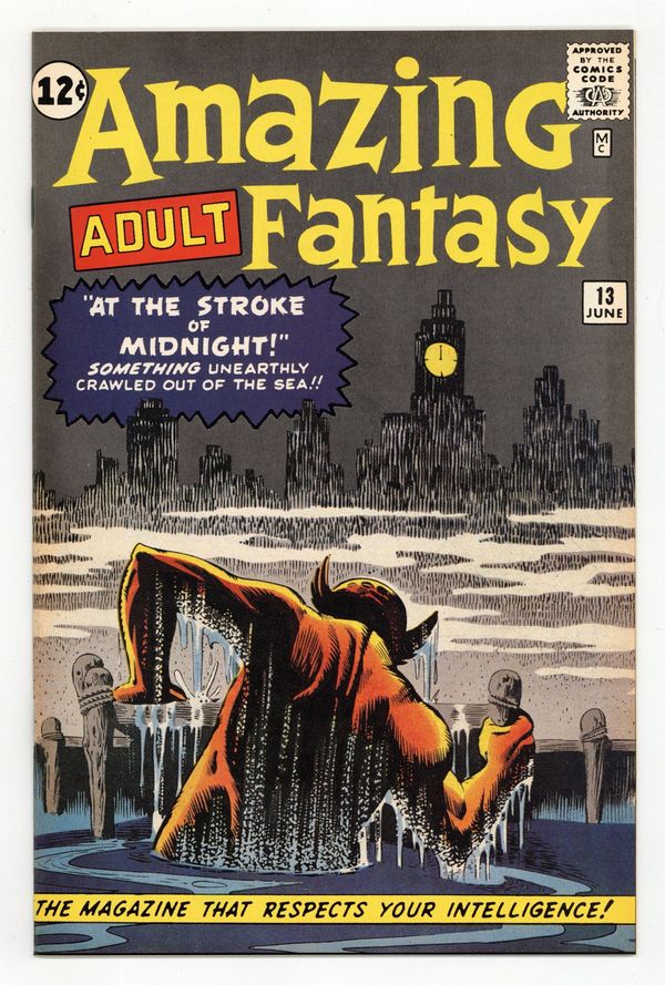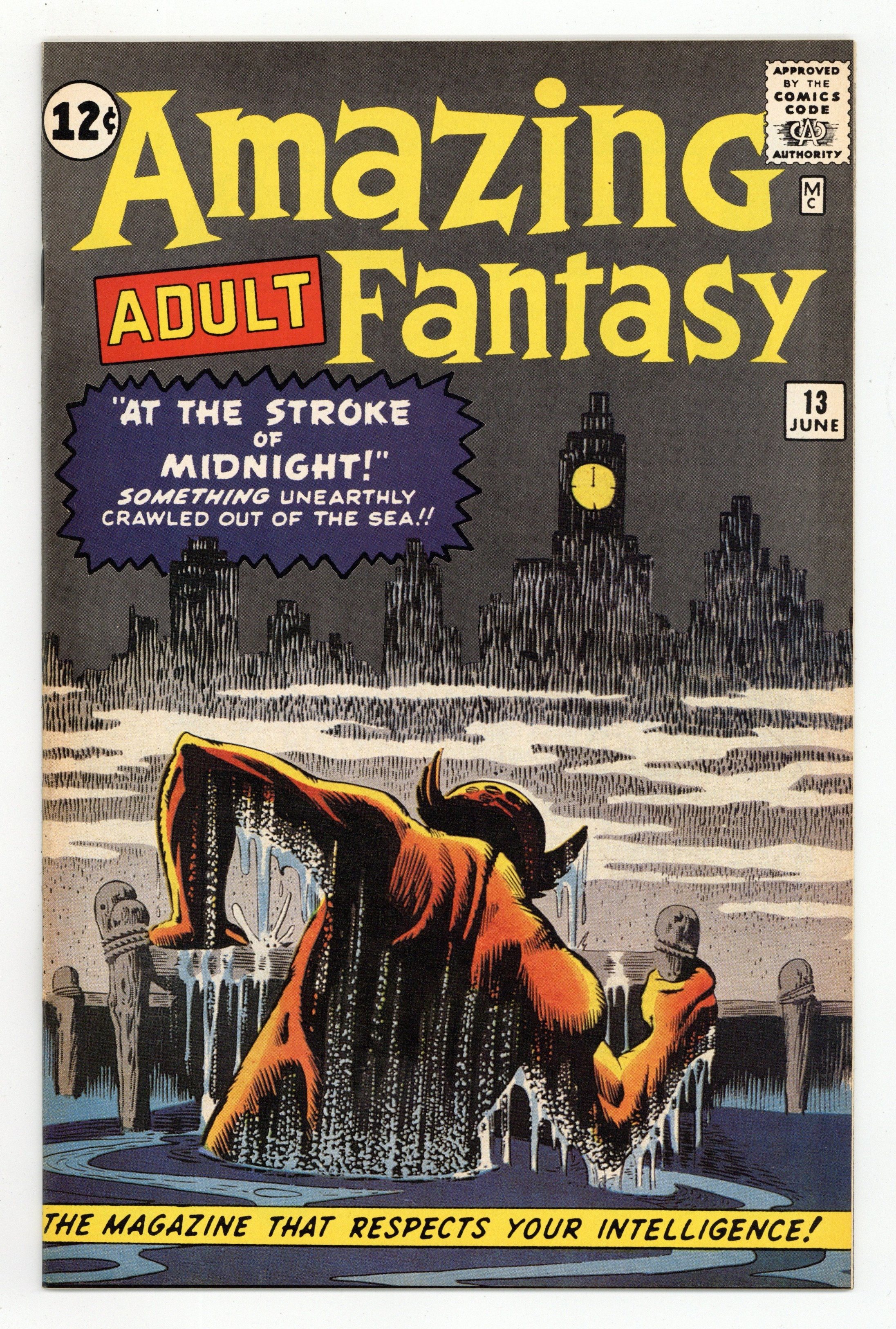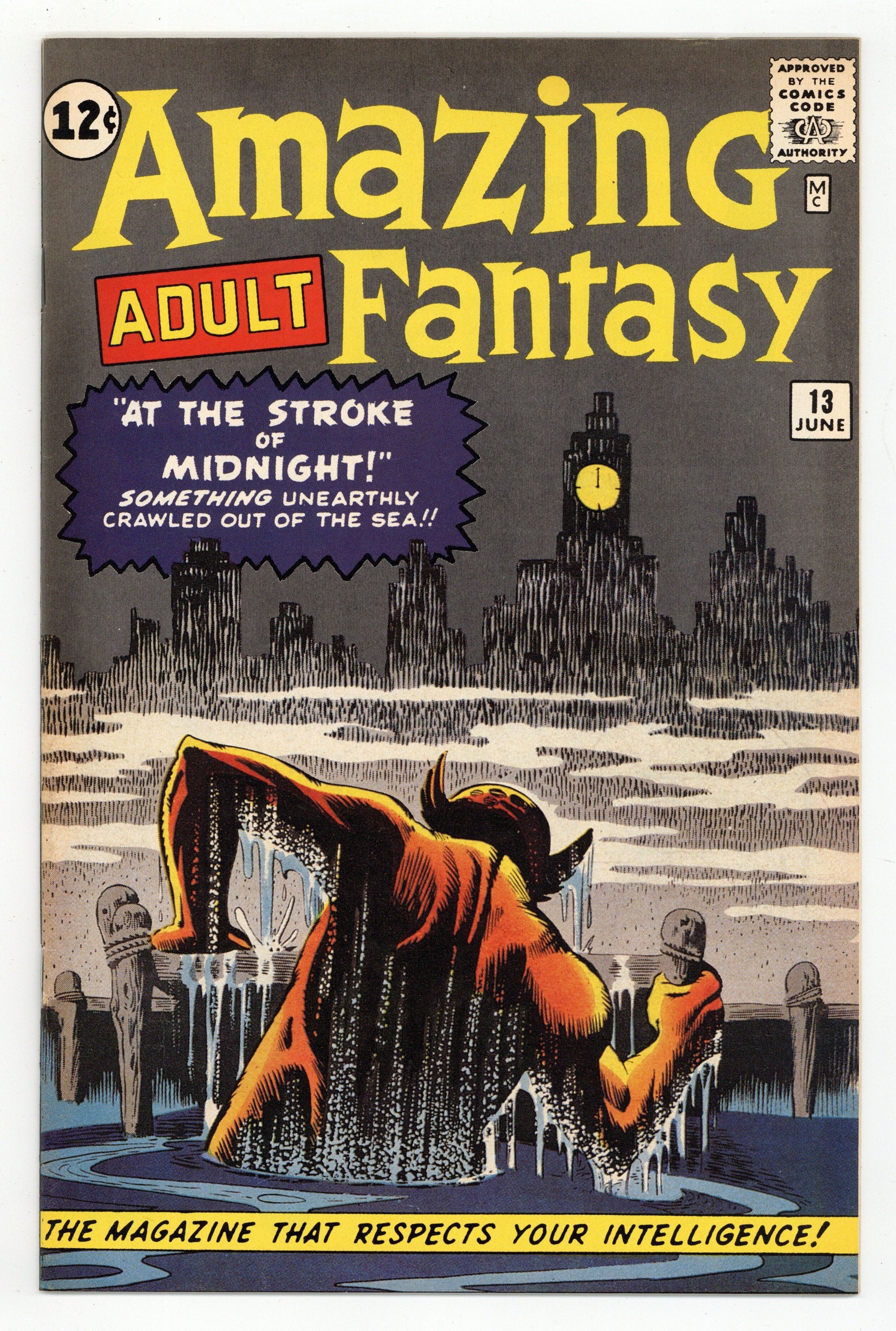 $11.001994 reprint available only through JC Penney catalog. Cover art by Steve Ditko. The Unsuspecting; Shape-shifting aliens invade Earth, taking the form of TV sets in order to influence people's thinking. Great Zeus; Zeus decides to leave Mt. Olympus and return to Earth, but when he arrives, far from his lightning bolts intimidating mortals, they find him a source of entertainment and want to book him as an act. The Little Gypsy Tea Room; A criminal forces a gypsy to hide him from the police, but gets more than he bargained for when she does help him. The Ultimate Weapon. At the Stroke of Midnight! All scripts by Stan Lee, all art by Steve Ditko. 36 pgs. NOTE: Low print run. It can be identified by having a Stridex ad on back cover.