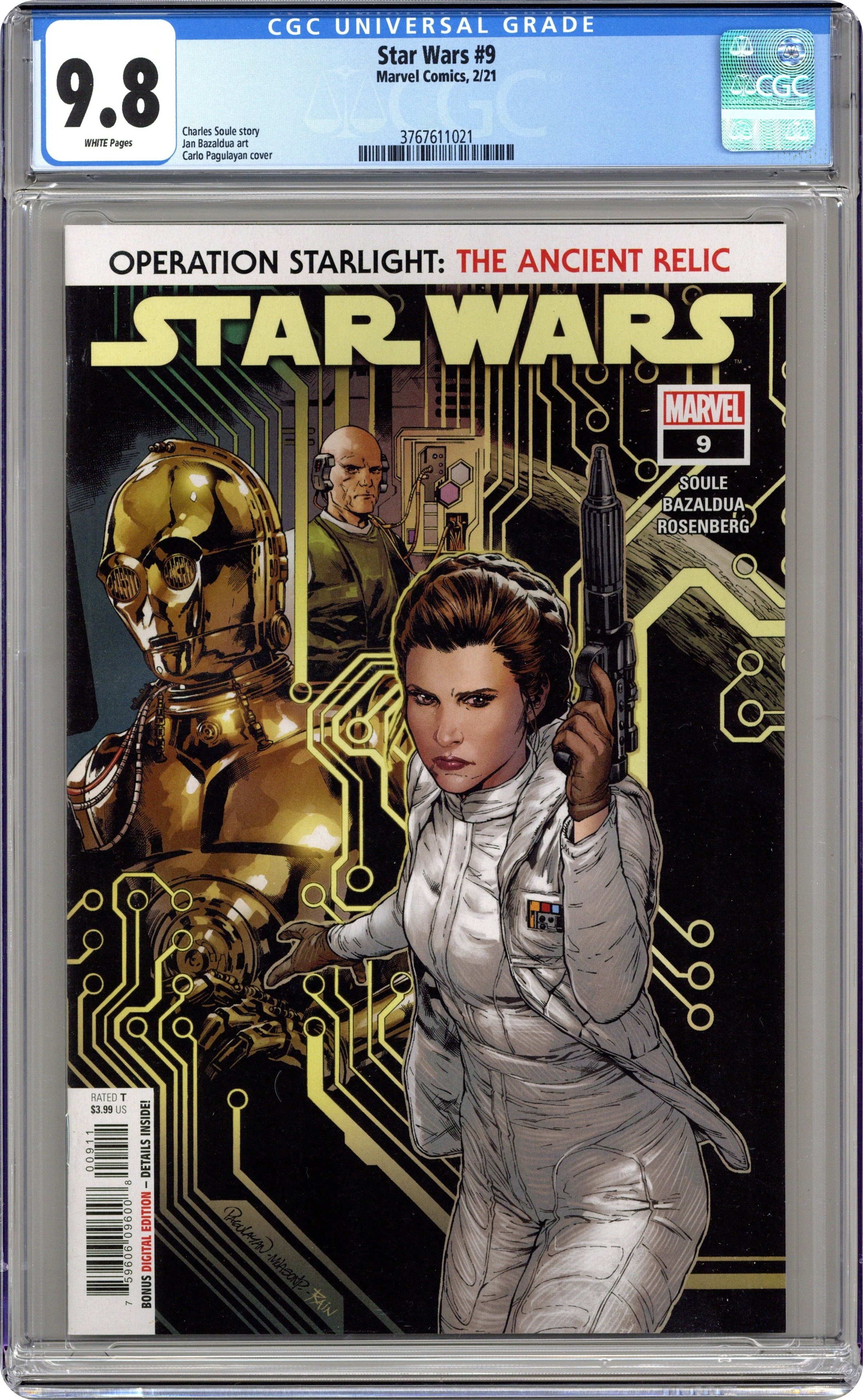 Written by Charles Soule. Art by Jan Bazaldua. Cover by Carlo Pagulayan and Jason Paz. UNDERTAKE A DESPERATE MISSION TO THE IMPERIAL CORE. In the Imperial Museum on CORUSCANT, an ancient droid holds the key to salvation of the REBEL ALLIANCE. The Rebels' elite operations team, the PATHFINDERS, must pull off a daring heist right under the nose of the EMPEROR himself, with LANDO and LOBOT along for the ride! 32 pages, full color. Rated T Cover price $3.99.