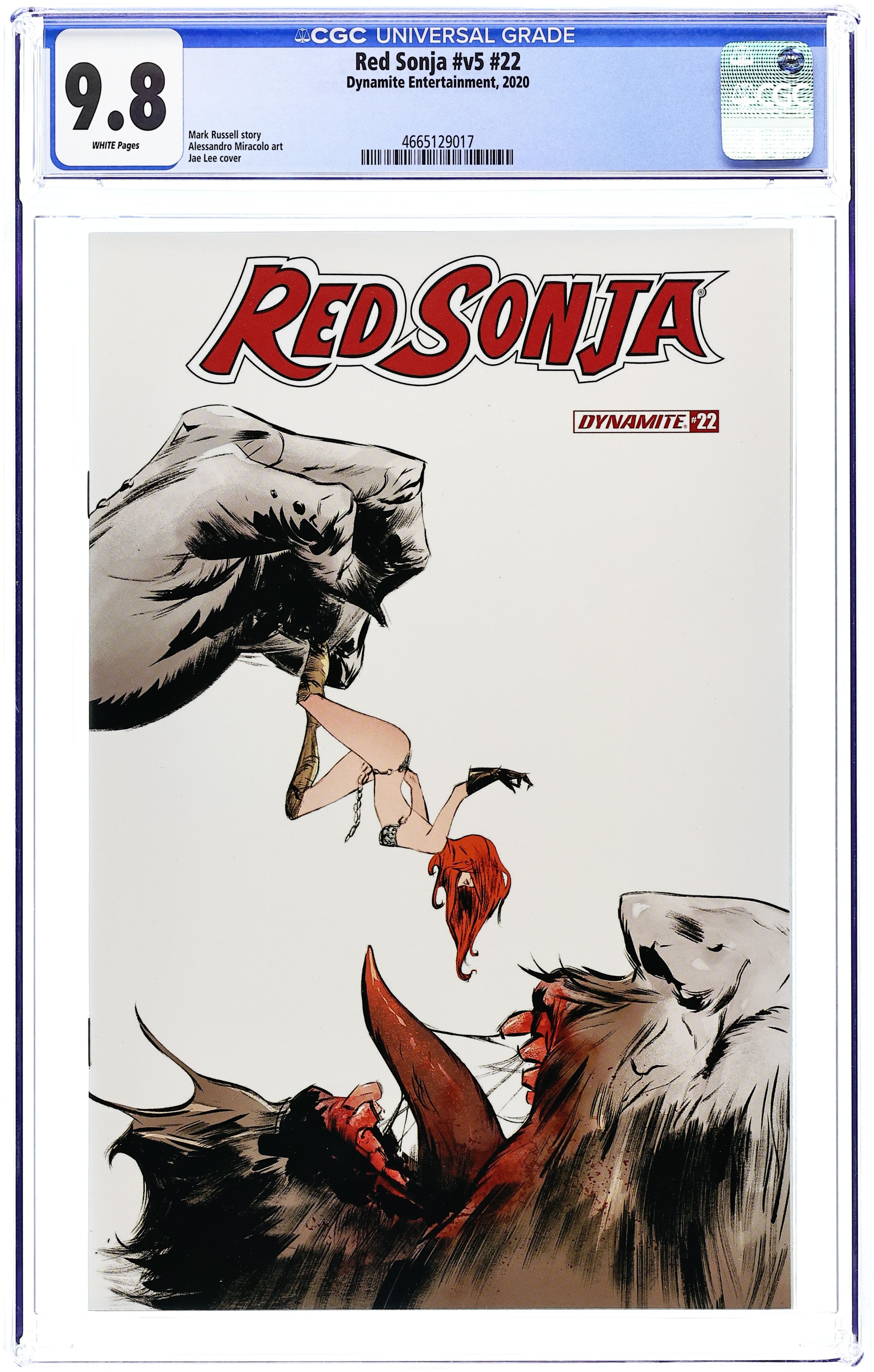 Written by Mark Russell. Art by Alessandro Miracolo. Cover by Jae Lee. 'Angel Of Death' The Bird Overlord is summoned. The boy destined to kill Red Sonja asserts his control. Sonja will stand along against The Beserkers. 32 pages, full color. Rated T+ Cover price $3.99.