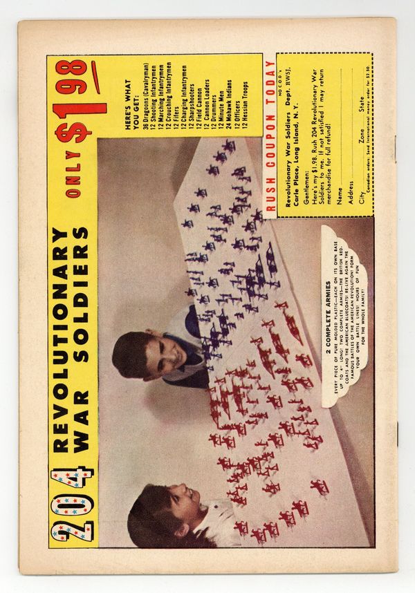 Starts Apr 27 Cover pencils by Curt Swan, inks by George Klein. "The Feud Between Superman and Clark Kent!", script by Edmond Hamilton, art by Al Plastino; Red Kryptonite causes Clark and Superman to be split into two separate beings, but Superman tries to take steps to prevent them from being reunited when the effect wears off. Ad for the Atom. One-page Private Pete story by Henry Boltinoff. "The Secret Origin of Supergirl's Super-Horse!", script by Leo Dorfman, art by Jim Mooney; Comet telepathically tells Supergirl how he was originally human, and loved by the sorceress Circe, until a jealous rival caused him to be changed into a horse. 36 Pages, Full Color. $0.12 Cover price $0.12.