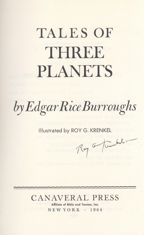 Published 1969 by Canaveral Press.$485.001st Printing - Written by Edgar Rice Burroughs, Illustrated by Roy G. Krenkel. Hardcover with dust jacket, 5.5" x 8", 286 pages, B&W.