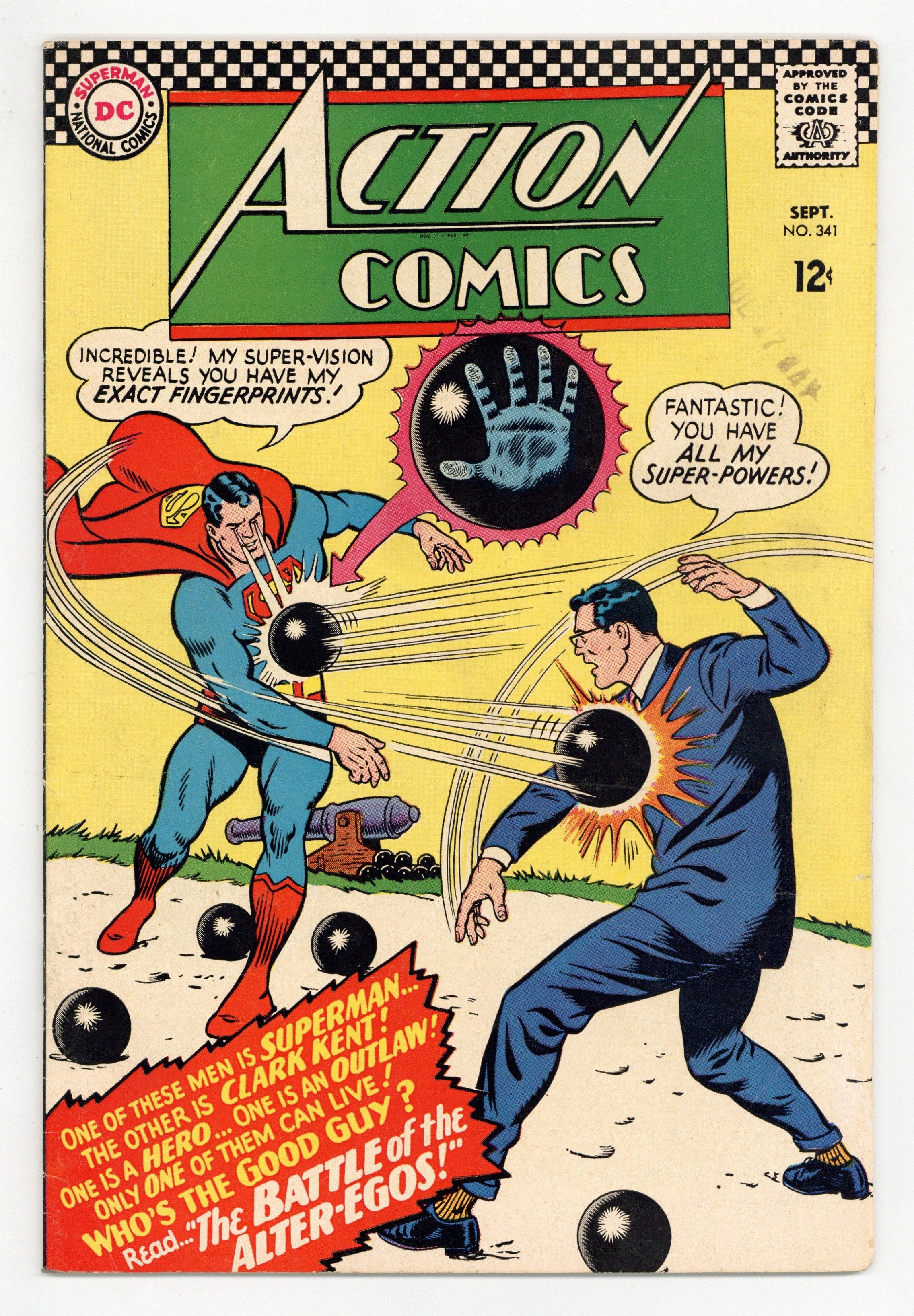 Cover pencils by Curt Swan, inks by George Klein. "Superman Versus Super Clark Kent!", script by Otto Binder, art by Al Plastino; An atomic explosion seems to split Superman and Clark Kent into separate people, but it's a plot by Professor Vakox to trap Superman in the Phantom Zone. Challengers of the Unknown ad. Brief Batman appearance in Supergirl reprint, "The Four Helpless Heroes!", script by Jerry Siegel, art by Jim Mooney; With Superman on a space mission, Supergirl has a day full of emergencies to deal with, but there's a big surprise at the end of it. Superman's Girl Friend Lois Lane ad. 36 Pages, Full Color. $0.12 Cover price $0.12.