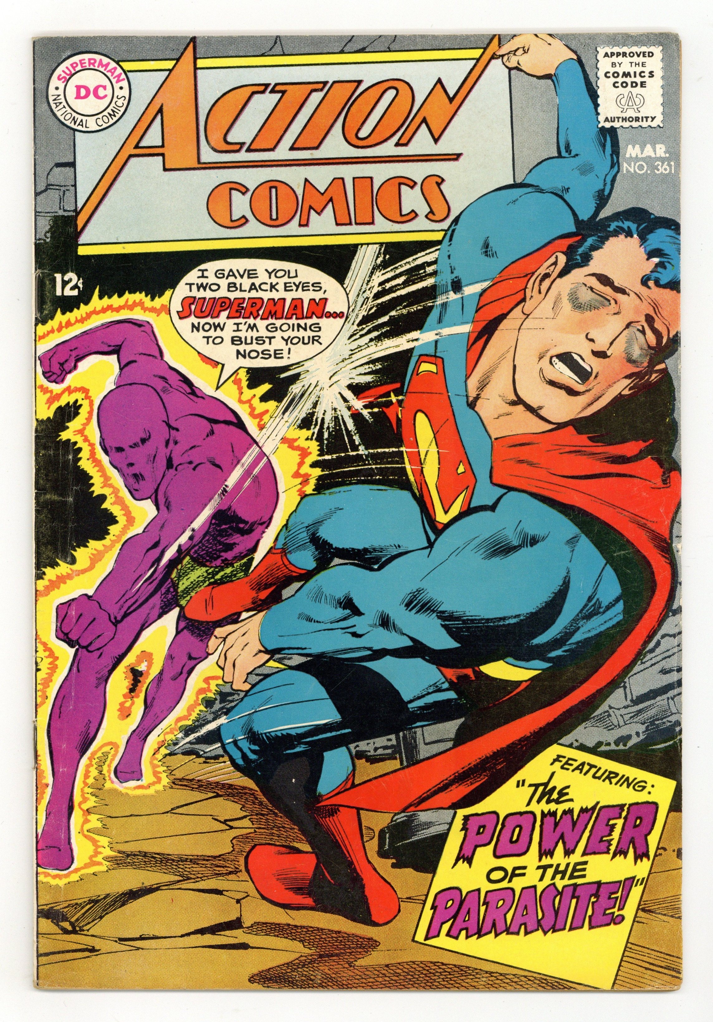 Cover by Neal Adams. 2nd appearance of Parasite in "The Power of the Parasite!", script by Jim Shooter, art by Al Plastino; The Parasite, having previously exploded, is discovered in space and restored to life by an alien; He travels back to Earth and disguises himself, taking a job at the Daily Planet so he can secretly drain Superman's powers. Supergirl ad. "Supergirl's Super-Date!", script by Otto Binder, art by Kurt Schaffenberger; Linda tries computer dating and is matched with another student on campus; She begins to suspect that he has super-powers and may even be from Krypton. 36 Pages, Full Color. $0.12 Cover price $0.12.