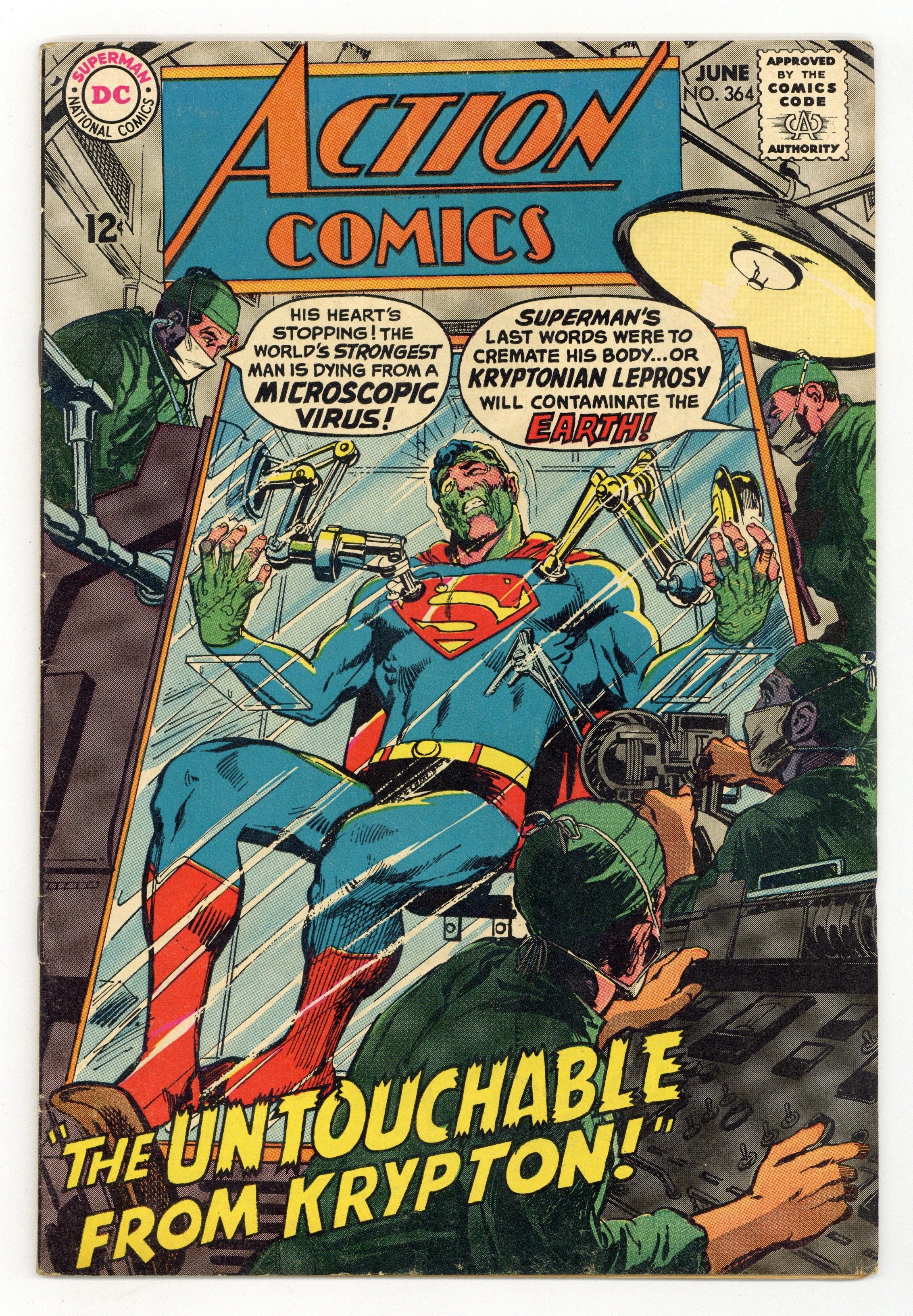 Cover by Neal Adams. "The Untouchable of Metropolis!", script by Leo Dorfman, pencils by Ross Andru, inks by Mike Esposito; The world's scientists are unable to develop a cure for Virus X and other possibilities also come to nothing; Superman decides to launch himself in a rocket into a faraway sun which will serve as his funeral pyre. Superman ad. "The Kiss of Death!", script by Otto Binder, art by Kurt Schaffenberger; Supergirl investigates the mystery of two women who die after a mysterious man marries and kisses them. Cap's Hobby Hints by Henry Boltinoff. 36 Pages, Full Color. $0.12 Cover price $0.12.