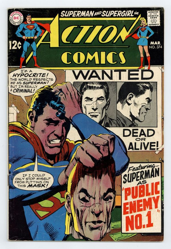 Cover by Neal Adams. "Alias Super-Thief!", script by Otto Binder, pencils by Curt Swan, inks by Jack Abel; The amnesiac Superman now believes that he is a criminal called Super-Thief and even leads his gang in crimes. One-page Super-Turtle story by Henry Boltinoff. "No Mercy for Supergirl!", script by Leo Dorfman, art by Kurt Schaffenberger; The Avenger, an alien from the planet Sarkon, sentences Supergirl to death for killing a plant and a butterfly during her college studies as Linda Danvers. Zeroids toy ad. The letters page contains a statement of ownership - average print run 695,000; average paid circulation 423,000. 36 Pages, Full Color. $0.12 Cover price $0.12.