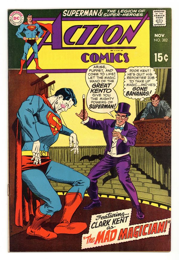 Cover pencils by Curt Swan, inks by Murphy Anderson. "Clark Kent, Magician!", script by Leo Dorfman, pencils by Curt Swan, inks by George Roussos; Clark becomes a stage magician so that he can expose a gang of diamond thieves. Justice League of America ad. Teen Titans/Adam Strange ad. Tales of the Legion of Super-Heroes backup, "Kill a Friend to Save a World!", script by Jim Shooter, pencils by Win Mortimer, inks by Jack Abel; The Legion uncover and dismantle a protection racket inadvertently powered by two of their own; Appearances by the Karate Kid, Light Lass, Shrinking Violet, Timber Wolf, and Ultra Boy. 36 Pages, Full Color. $0.15 Cover price $0.15.