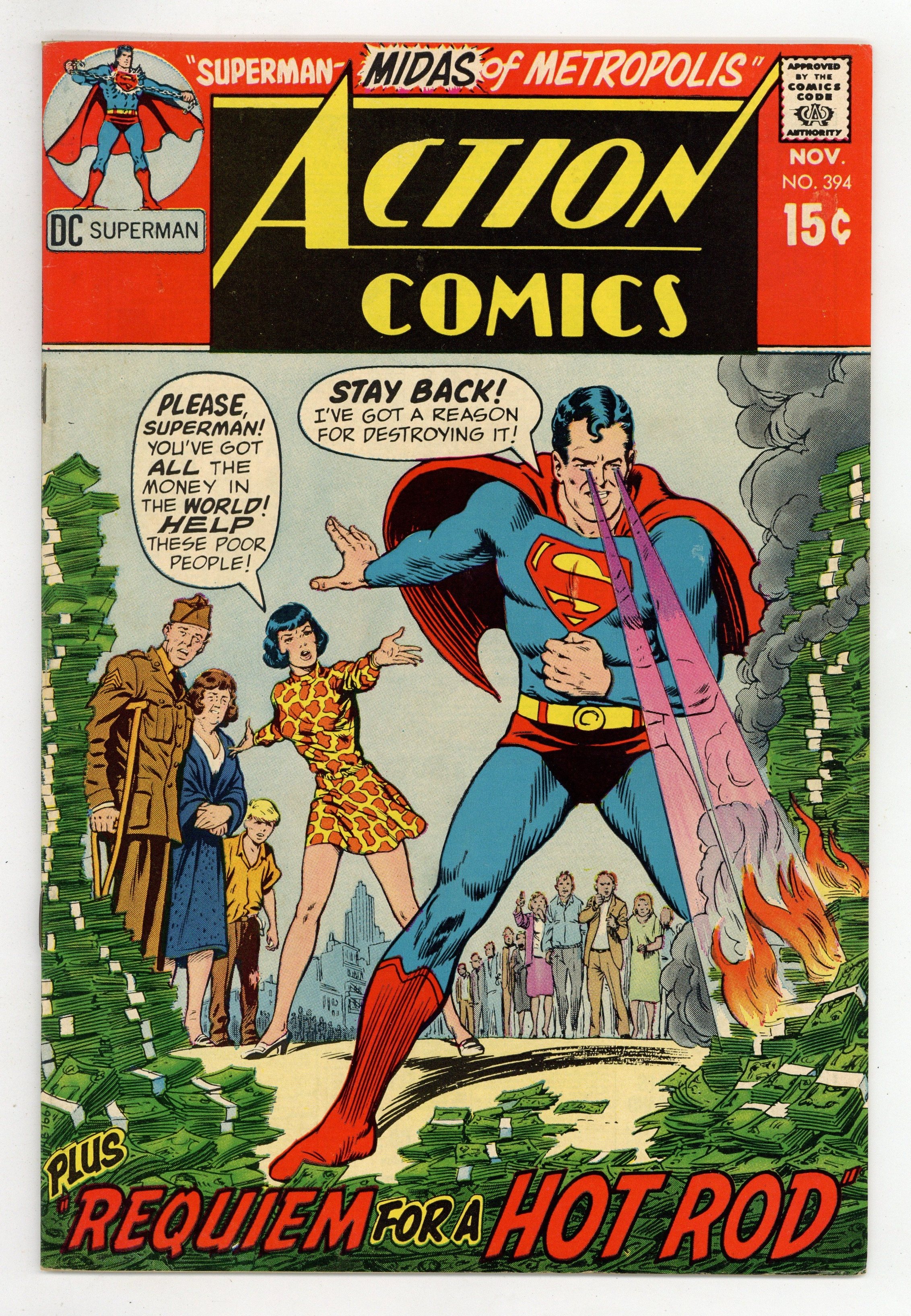 Cover pencils by Curt Swan, inks by Murphy Anderson. "Midas of Metropolis!", script by Leo Dorfman, pencils by Curt Swan, inks by Murphy Anderson; When Superman meets billionaire Cyrus Brand, he begins to compete with the tycoon, inexplicably trying to amass an even larger fortune. Biographies of Curt Swan and Murphy Anderson with self-portraits. "Requiem for a Hot Rod!", script by Leo Dorfman (as Geoff Brown), pencils by Curt Swan, inks by Murphy Anderson; Clark defeats a bullying drag racer at his own game. Super Science Super Sorcery ad. 2-page Dexter story by Henry Boltinoff. Letter to the editor from comics writer/artist Stan Timmons. 36 Pages, Full Color. $0.15 Cover price $0.15.