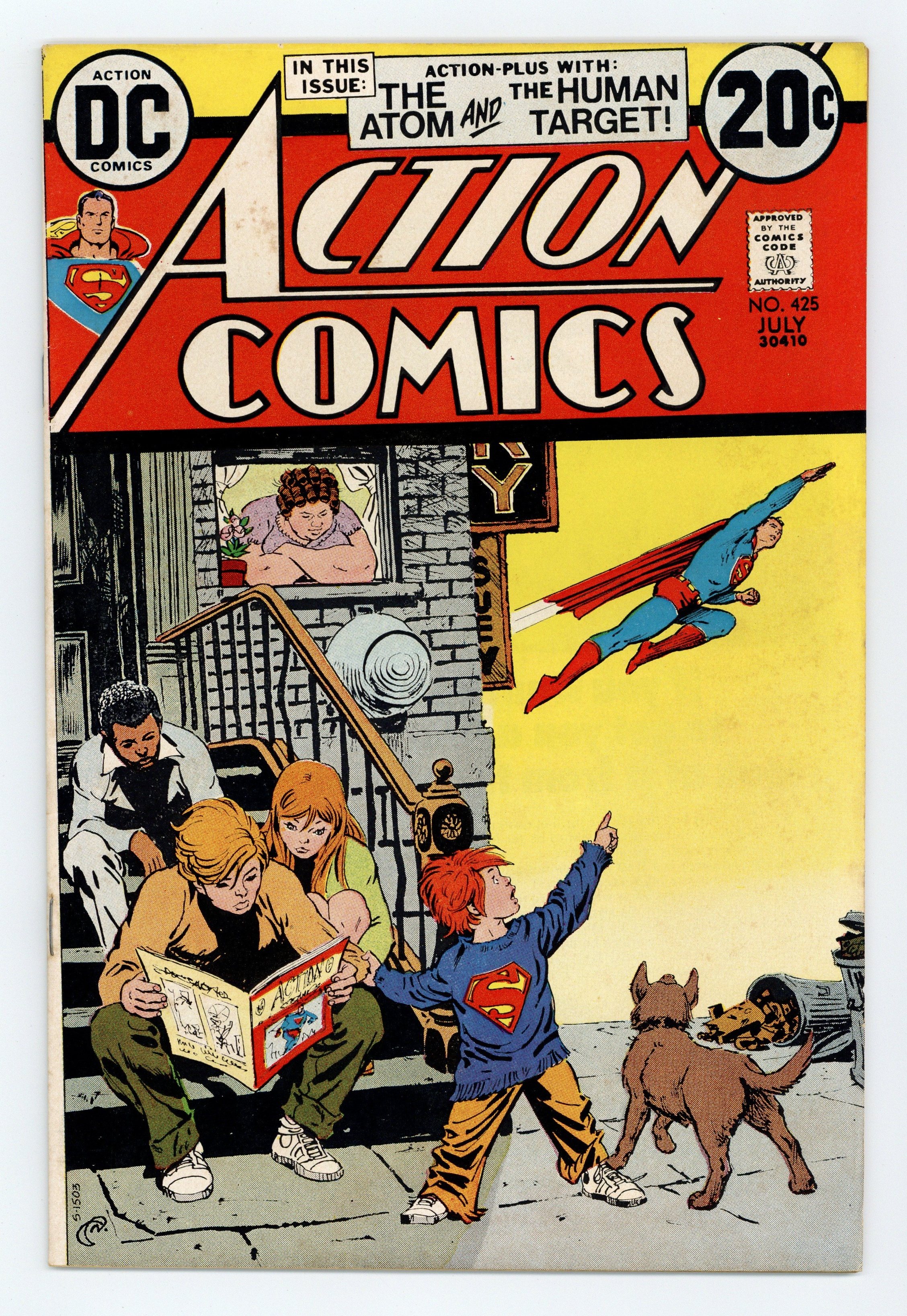 Cover by Nick Cardy. "The Last Moa on Earth!", script by Cary Bates, pencils by Curt Swan, inks by Frank Giacoia; The hunter Jon Halaway shoots the last of the moa birds and is guilt-ridden by this; Eventually he finds a moa egg and returns to Metropolis; The moa hatches and has gained super-powers. "13 Old Men Who Run the World!" starring the Atom, script by Elliot S! Maggin, pencils by Dick Dillin, inks by Mike Esposito and Frank Giacoia (as Phil Zupa); Jean Loring is defending Dr. Selzheim in a case where he is framed by a mafia boss for stealing gold bullion. "The Short-Walk-to-Disaster Contract!", script by Len Wein, pencils by Neal Adams, inks by Dick Giordano; Human Target is hired by his servant Luigi to pose as Luigi's cousin Antonio; He is a circus artist, and his act has been sabotaged a couple of times. 36 Pages, Full Color. $0.20 Cover price $0.20.
