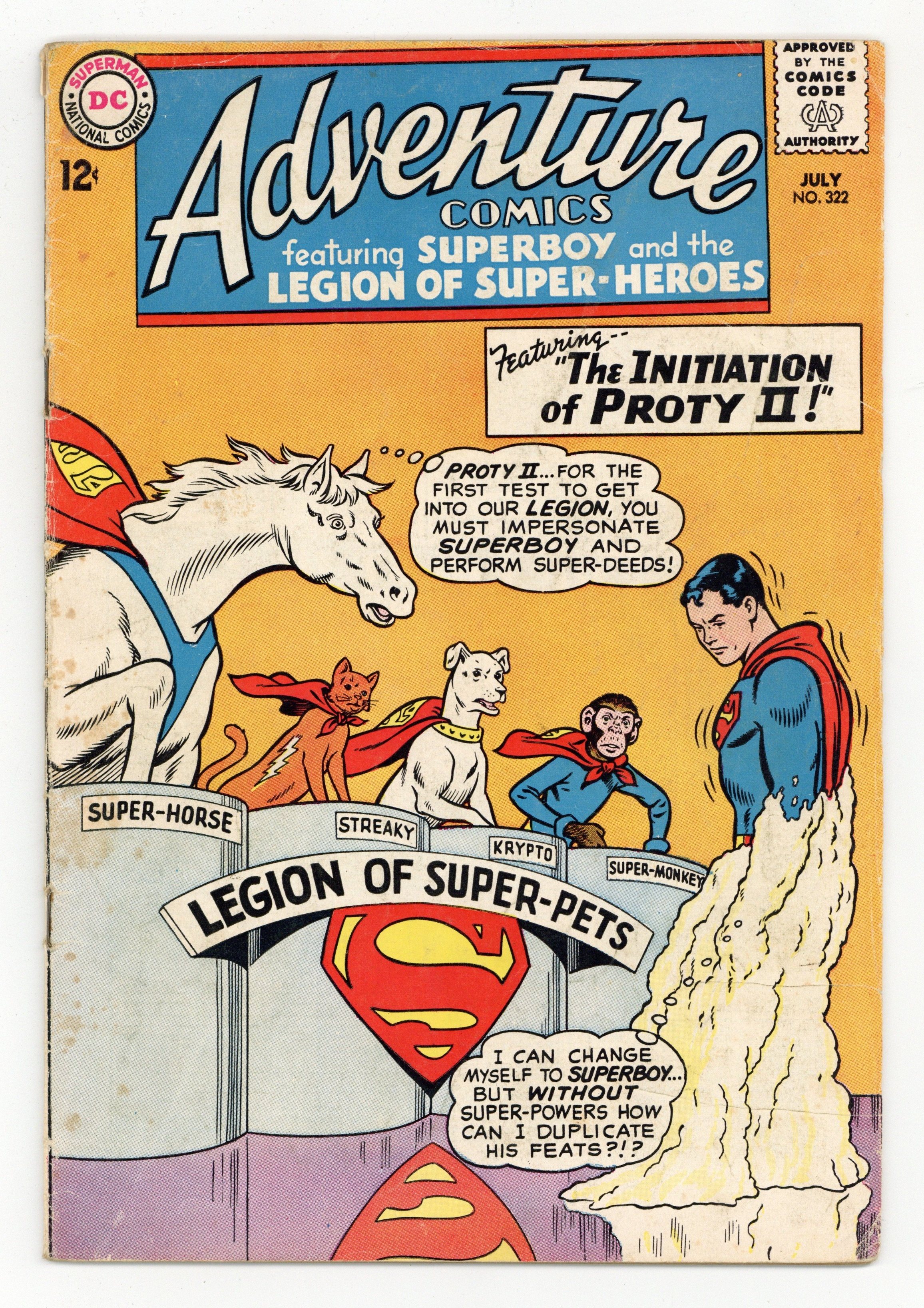 Cover pencils by Curt Swan, inks by George Klein. The Super-Tests of the Super-Pets!--Tales of the Legion of Super-Heroes, script by Edmond Hamilton, pencils by John Forte, inks by Sheldon Moldoff and Al Plastino (head photostated/pasted on Superboy, page 3, panel 1); With the Legion away trying to capture the Time Trapper, the Super-Pets are left in charge. Clark Kent, Class Cheat starring Superboy, script by Otto Binder, art by George Papp; Clark deliberately starts flunking tests so he can break a ring of cheaters in his school. Little Pete humor page by Henry Boltinoff. Rocky and Bullwinkle star in a one-page Cheerios ad. 36 Pages, Full Color. Cover price $0.12.