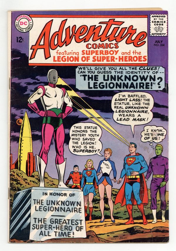 Cover pencils by Curt Swan, inks by George Klein. The Unknown Legionnaire--Tales of the Legion of Super-Heroes, script by Edmond Hamilton, pencils by John Forte, inks by Sheldon Moldoff; Superboy recalls a case when the Legionnaires were helped by a hero called Unknown Boy. Rocky and Bullwinkle Cheerios ad. The One-Man Baseball Team starring Superboy, script by Otto Binder, pencils by Curt Swan. Rocky and Bullwinkle star in a one-page Cheerios ad. 36 Pages, Full Color. Cover price $0.12.