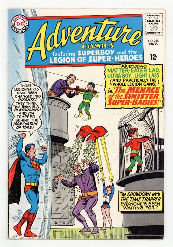 Cover pencils by Curt Swan, inks by George Klein. The Menace of the Sinister Super-Babies!--Tales of the Legion of Super-Heroes, script by Jerry Siegel, art by John Forte; The Time Trapper sends Glorith to turn the Legionnaires into children. The Game of Kriss-Kross Krypton, script by Otto Binder, art by John Sikela; Superboy appears to be affected by one of Lana's board games. Cap's Hobby Center activity page by Henry Boltinoff. Rocky and Bullwinkle star in a one-page Cheerios ad. 36 Pages, Full Color. Cover price $0.12.