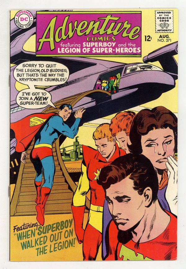 Cover art by Neal Adams. The Colossal Failure!--Tales of the Legion of Super-Heroes, script by Jim Shooter, pencils by Jim Shooter (layouts only) and Curt Swan, inks by Jack Abel; Colossal Boy's parents are kidnapped, forcing him to betray the Legion. When Superboy Walked Out on the Legion!, script by Ed Hamilton, art by George Papp; Aliens kidnap Superboy and other planetary champions to be their own champion. 36 Pages, Full Color. Cover price $0.12.