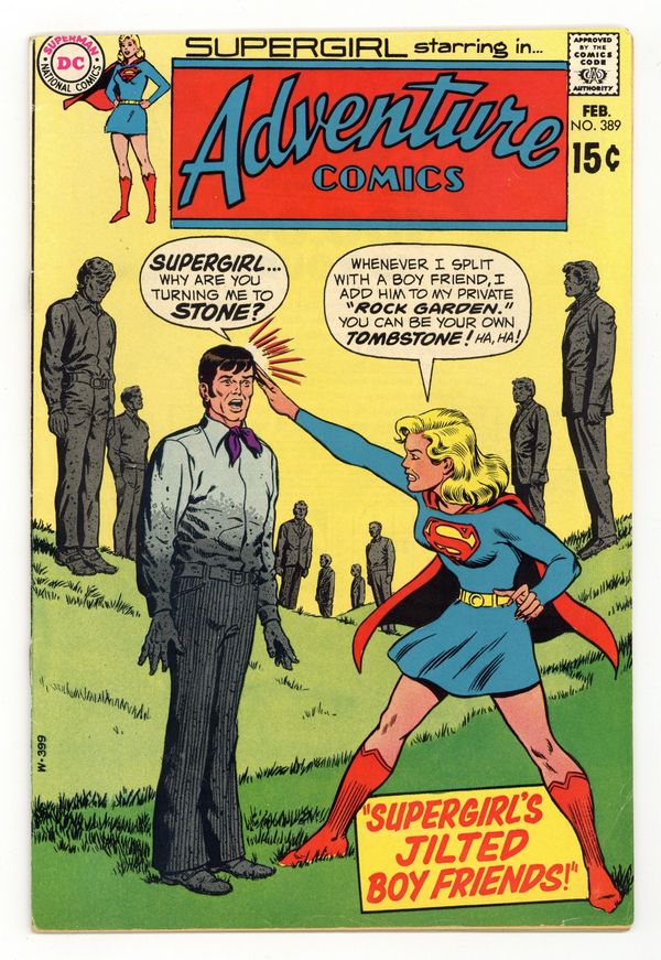 $16.00Cover pencils by Curt Swan, inks by Murphy Anderson. The Mystery Magician starring Supergirl, Malcolm the Mysterious, Zor-El and Alura (flashback), and Fred Danvers, script by Robert Kanigher, art by Win Mortimer. Supergirl's Jilted Boy Friends!, script by Cary Bates, art by Kurt Schaffenberger; Supergirl battles Brainiac. 36 Pages, Full Color. Cover price $0.15.