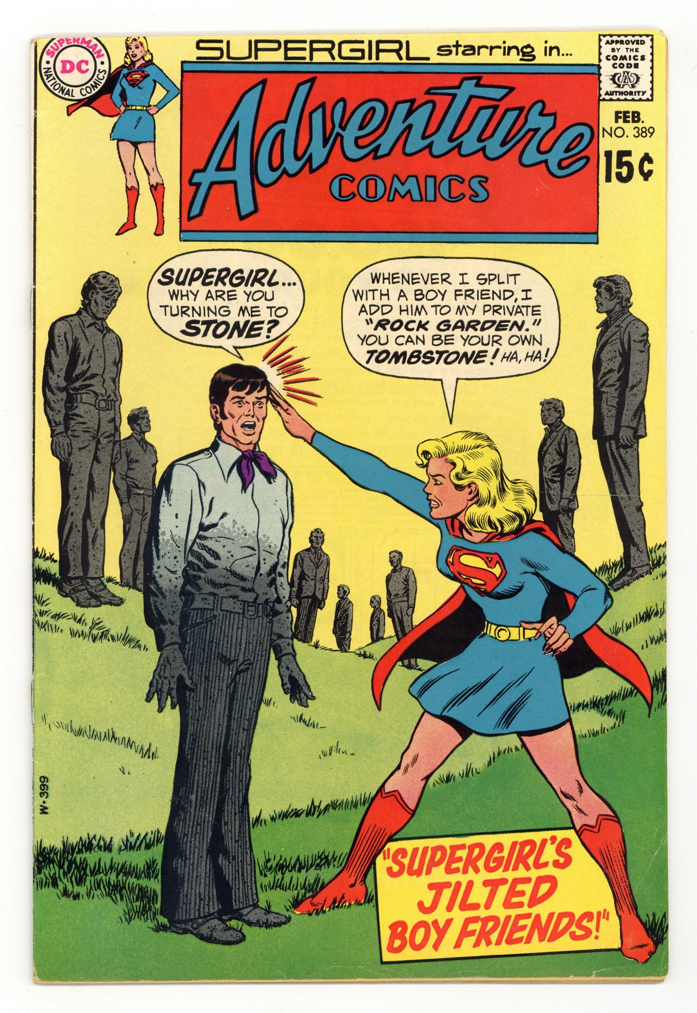 Cover pencils by Curt Swan, inks by Murphy Anderson. The Mystery Magician starring Supergirl, Malcolm the Mysterious, Zor-El and Alura (flashback), and Fred Danvers, script by Robert Kanigher, art by Win Mortimer. Supergirl's Jilted Boy Friends!, script by Cary Bates, art by Kurt Schaffenberger; Supergirl battles Brainiac. 36 Pages, Full Color. Cover price $0.15.