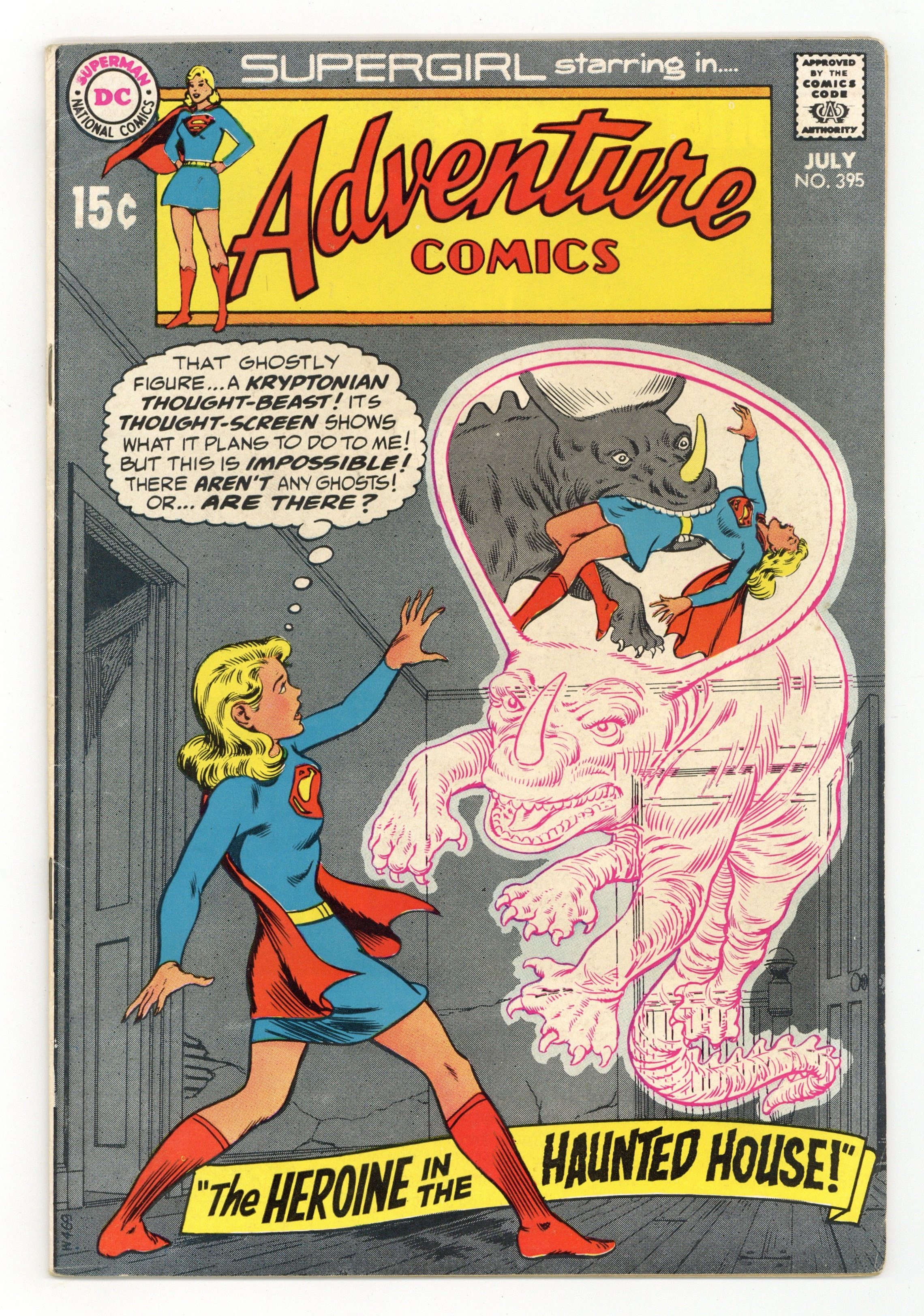 Cover pencils by Curt Swan, inks by Murphy Anderson. The Rejected Supergirl! starring Supergirl, Sophia Loren, Marie Curie, Florence Nightingale, Greta Garbo, Barbra Streisand, Coretta King, Dr. H. H. Hanson, and Binnie Baker, script by Robert Kanigher, pencils by Win Mortimer, inks by Jack Abel. The Heroine in the Haunted House! Supergirl, a Kryptonian thought-beast, Lara, Zor-El, and General Zod, script by Robert Kanigher, art by Kurt Schaffenberger; Supergirl vs. Jax-Ur, General Vakox, and Kru-El. 36 Pages, Full Color. Cover price $0.15.