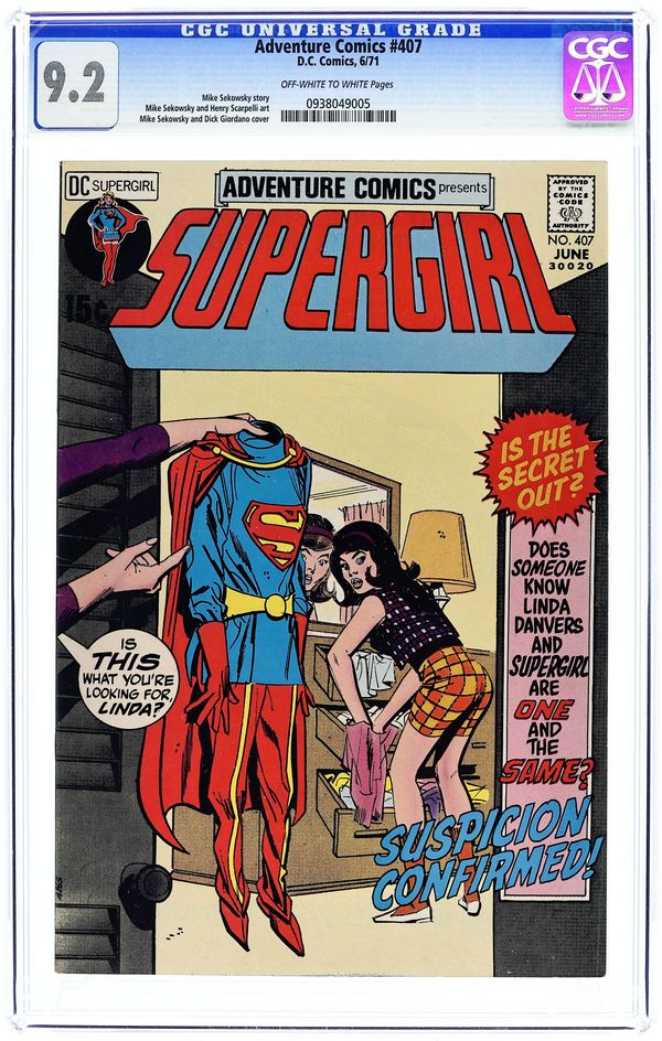 Cover pencils by Mike Sekowsky, inks by Dick Giordano. Suspicion Confirmed, script and pencils by Mike Sekowsky, inks by Henry Scarpelli; in a story continued from the previous issue, Supergirl's secret identity is in danger, but that's just the beginning of her problems as she faces off with Starfire. 36 Pages, Full Color. Cover price $0.20.
