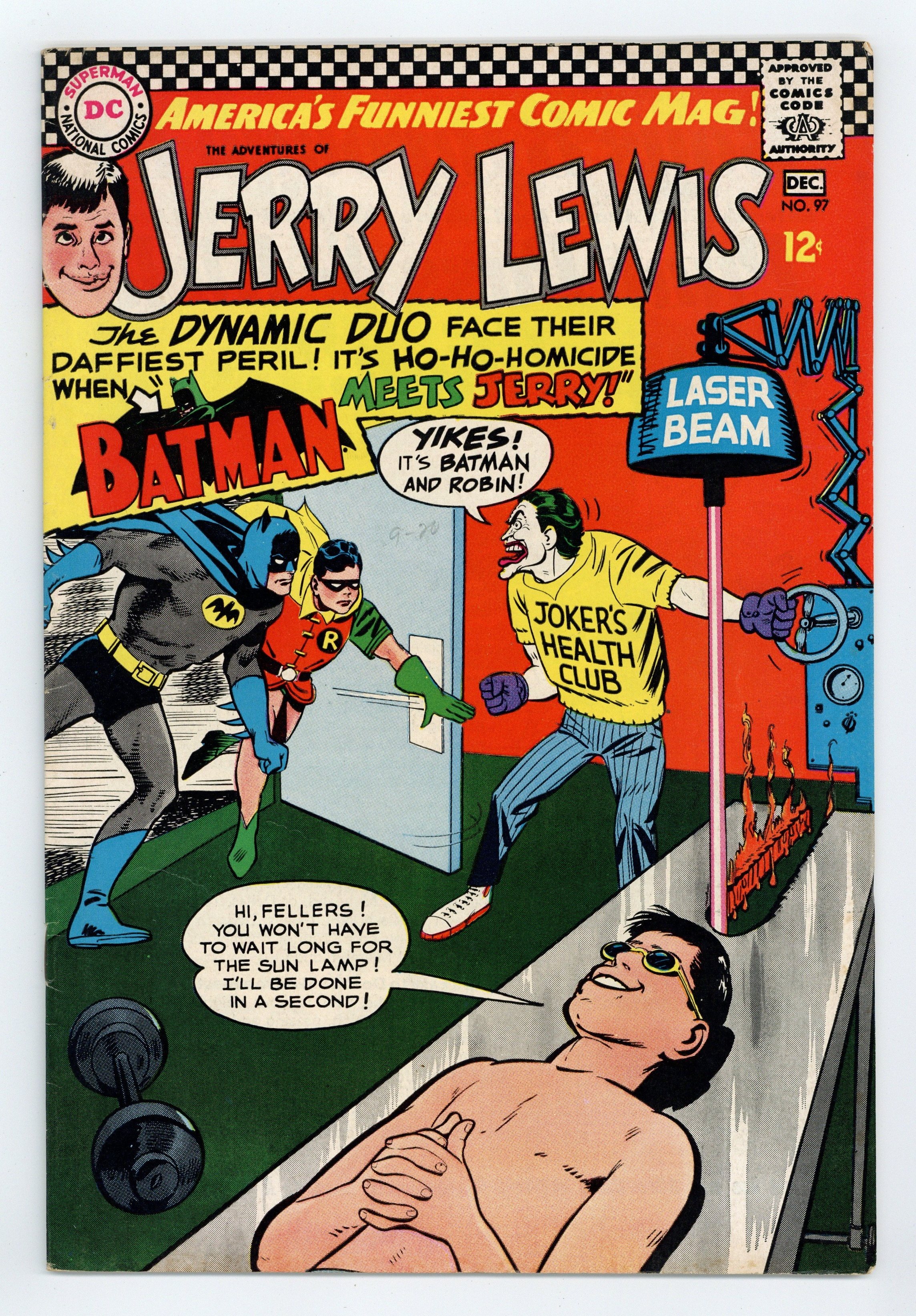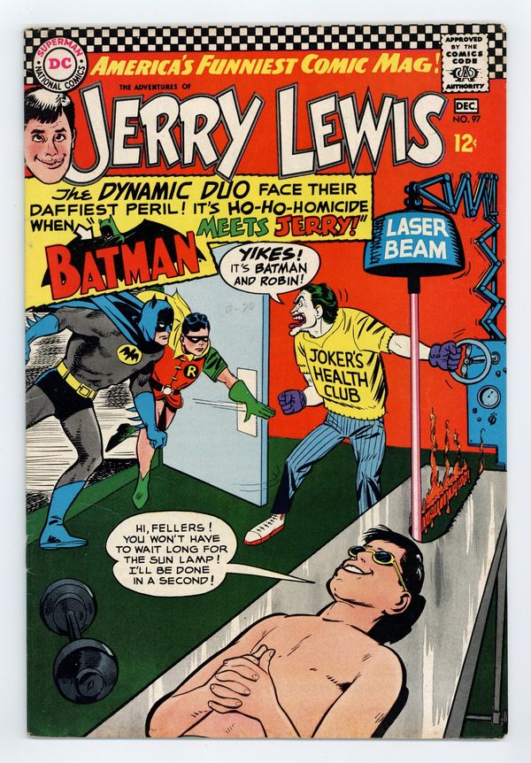$17.50Batman and Robin crossover. vs. The Joker. Cover art by Bob Oksner. Batman Meets Jerry, script by Arnold Drake, art by Bob Oksner; Inspired by the Batman TV show, Jerry and Renfrew become Ratman and Rotten. Ratman Joins Batman (Part 2); Batman drives the 50's Batmobile. Everybody's Doing the Kangaroo Hop!, script by Arnold Drake, art by Bob Oksner; Batman's villains get together to wipe out the Kangaroo because he's ruining their reputations. 36 pgs. Cover price $0.12.