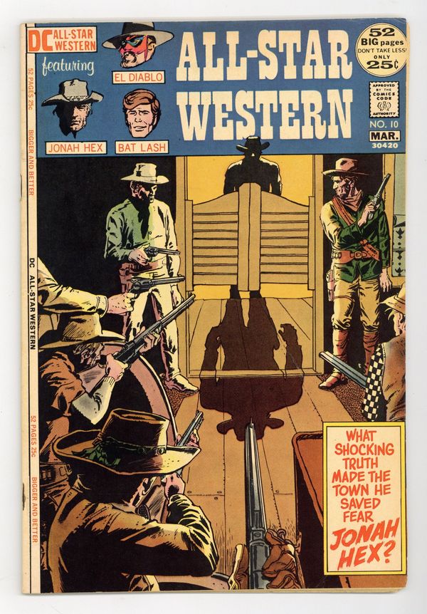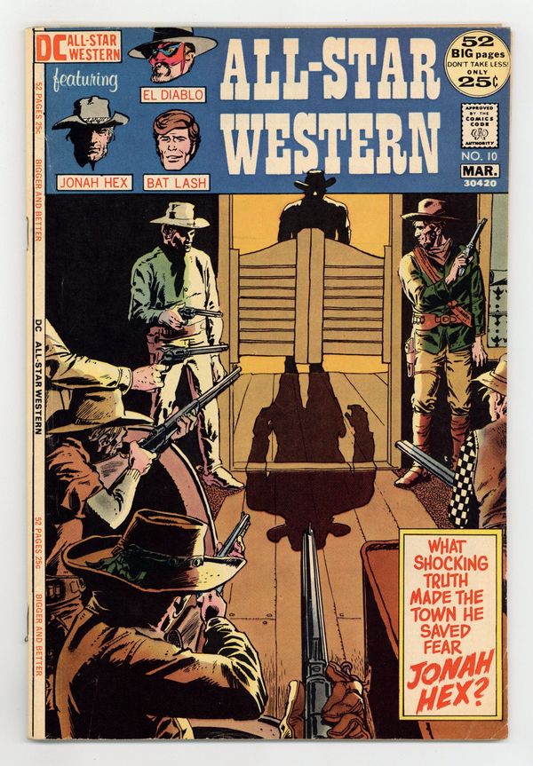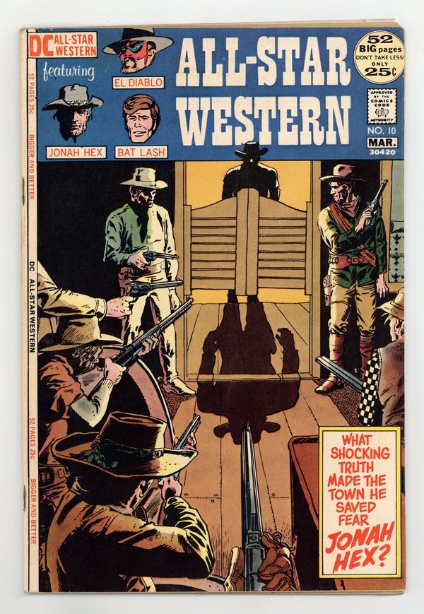 Giant-size issue. 1st appearance of Jonah Hex in "Welcome to Paradise." Script by John Albano, art by Tony De Zuniga. El Diablo stars in "The Devil's Secret." Script by Bob Kanigher, art by Gray Morrow. Bat Lash reprint: "My Name is Bat Lash!" (part 2) with script by Sergio Aragones and Denny O'Neil, pencils by Nick Cardy, inks by Mike Sekowsky. DeZuniga cover. Cover price $0.25.